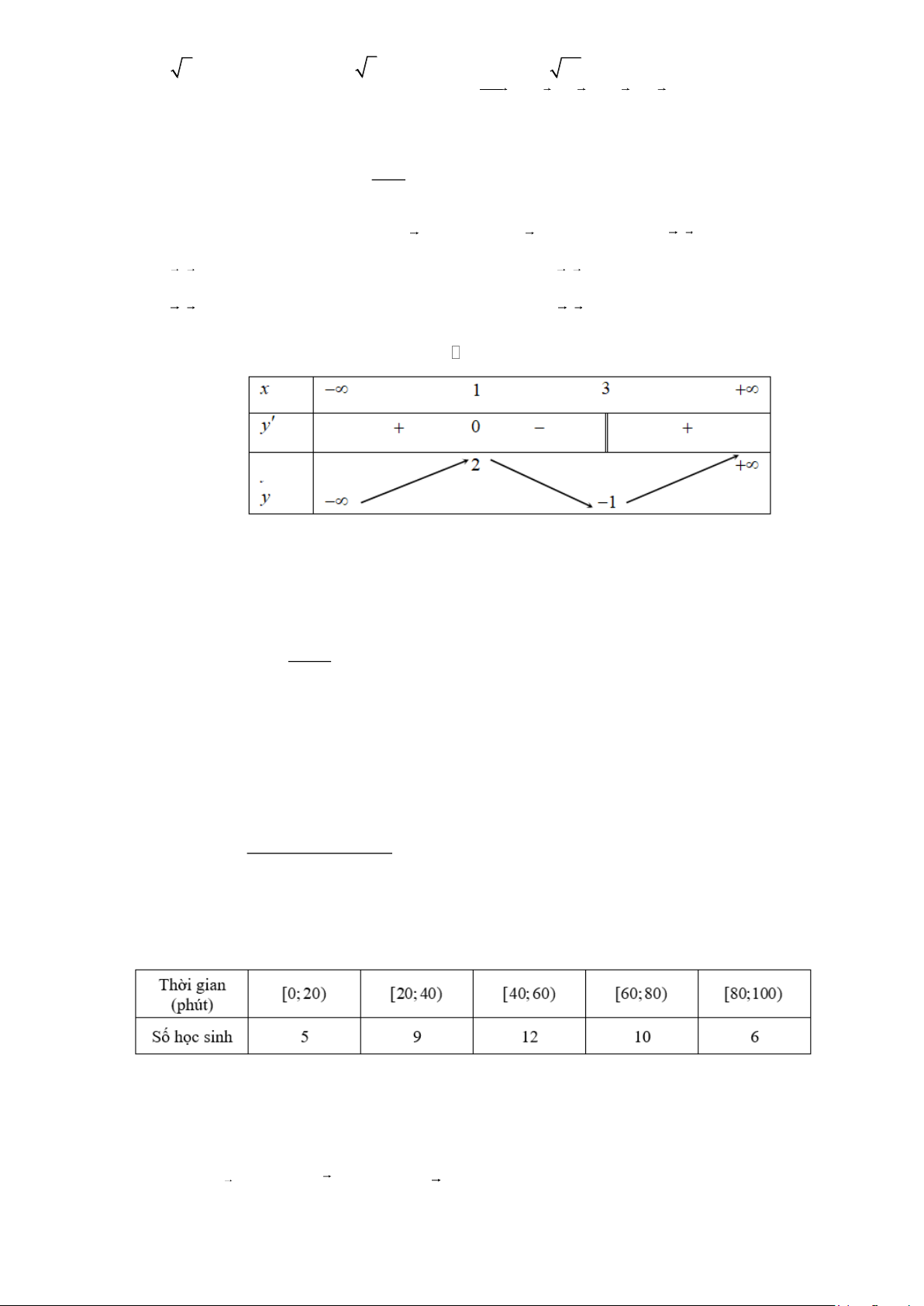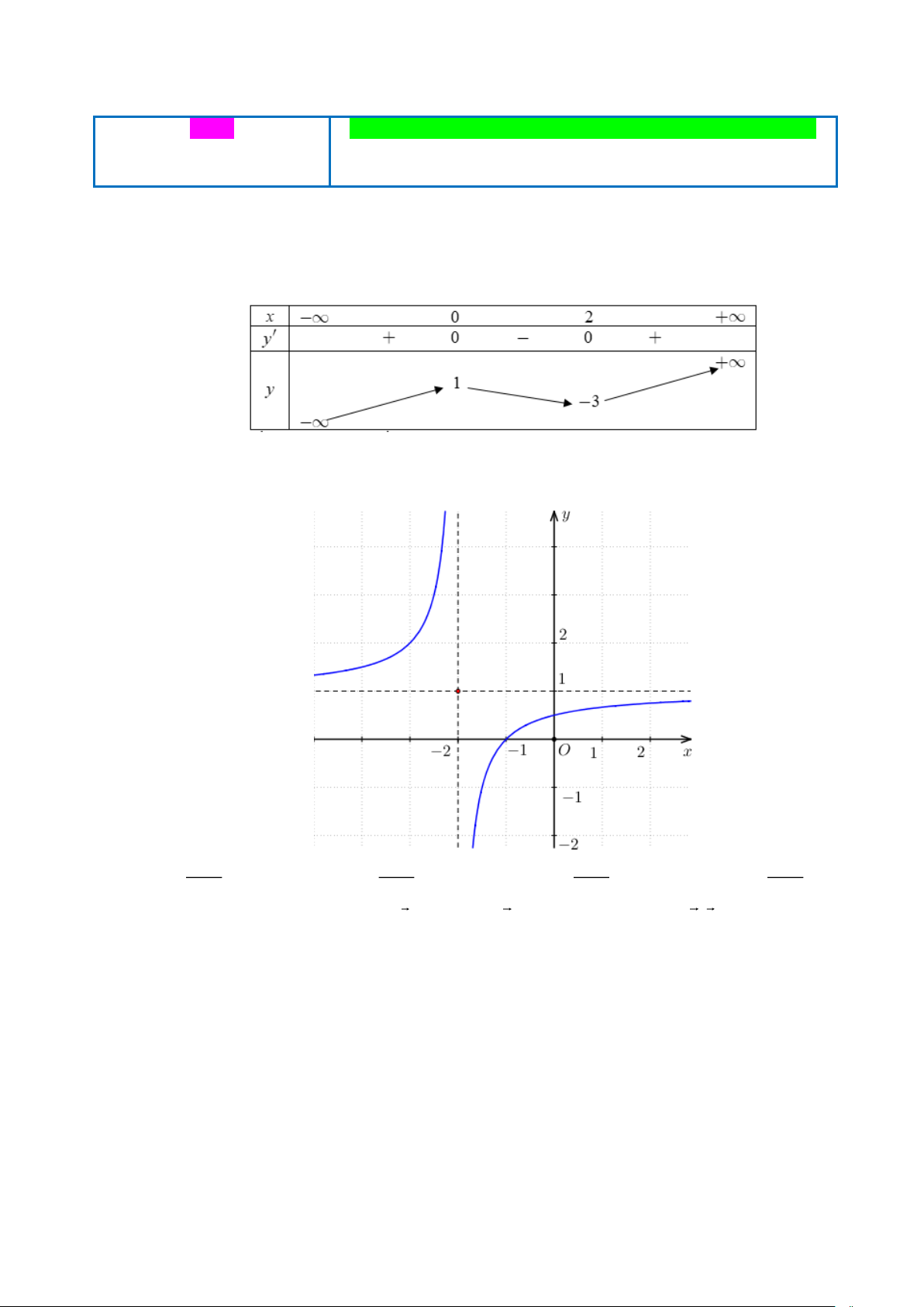 Câu 1. Cho hàm số y = f (x) có bảng biến thiên như sau: