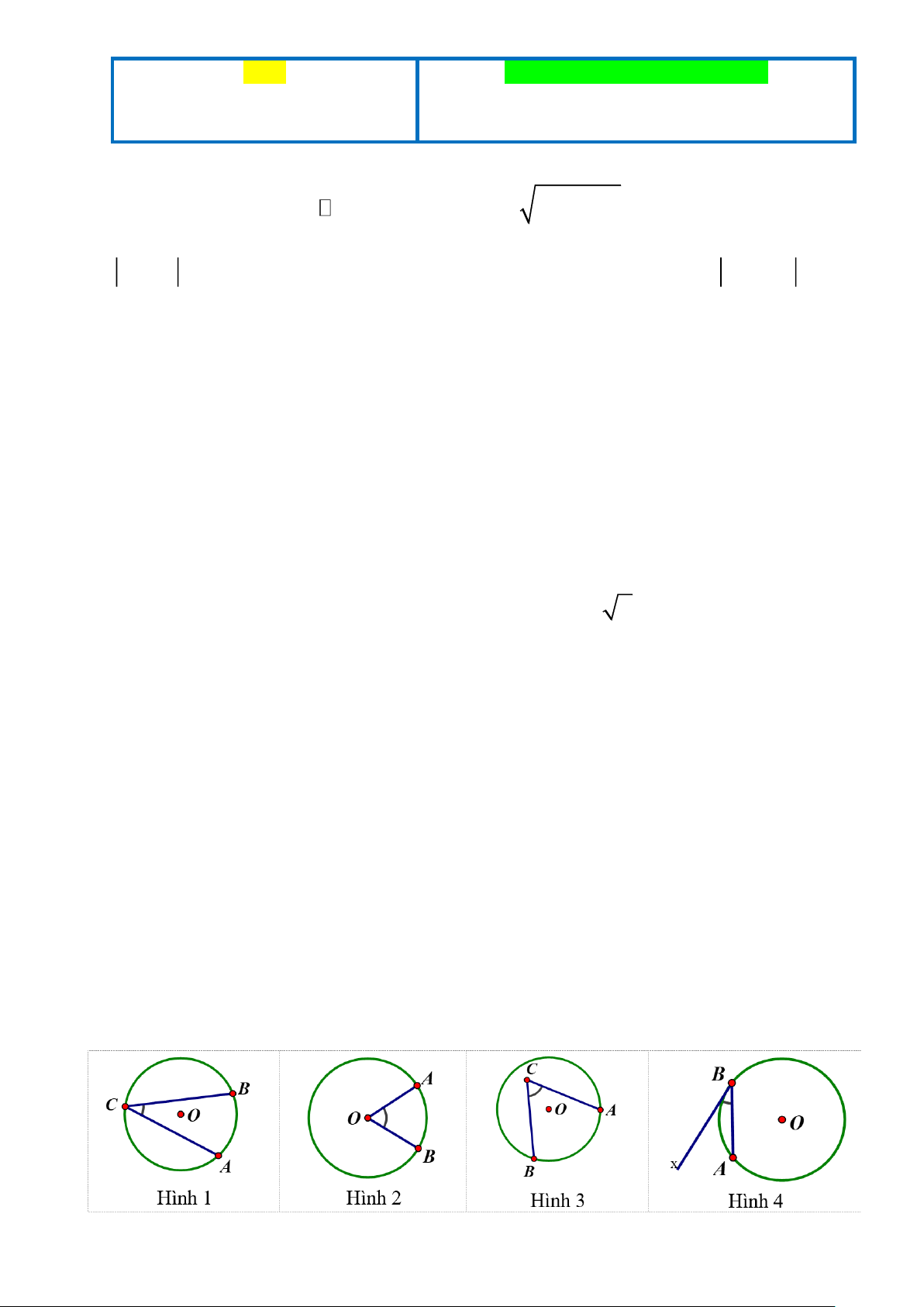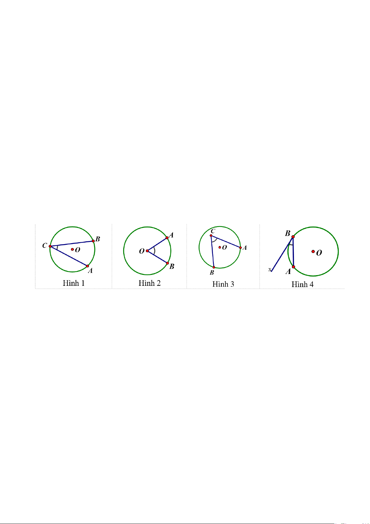 Câu 7 Hình nào dưới đây biểu diễn góc ở tâm? A. Hình 4. B. Hình 3. C. Hình 2. D. Hình 1. Lời giải Đáp án: C