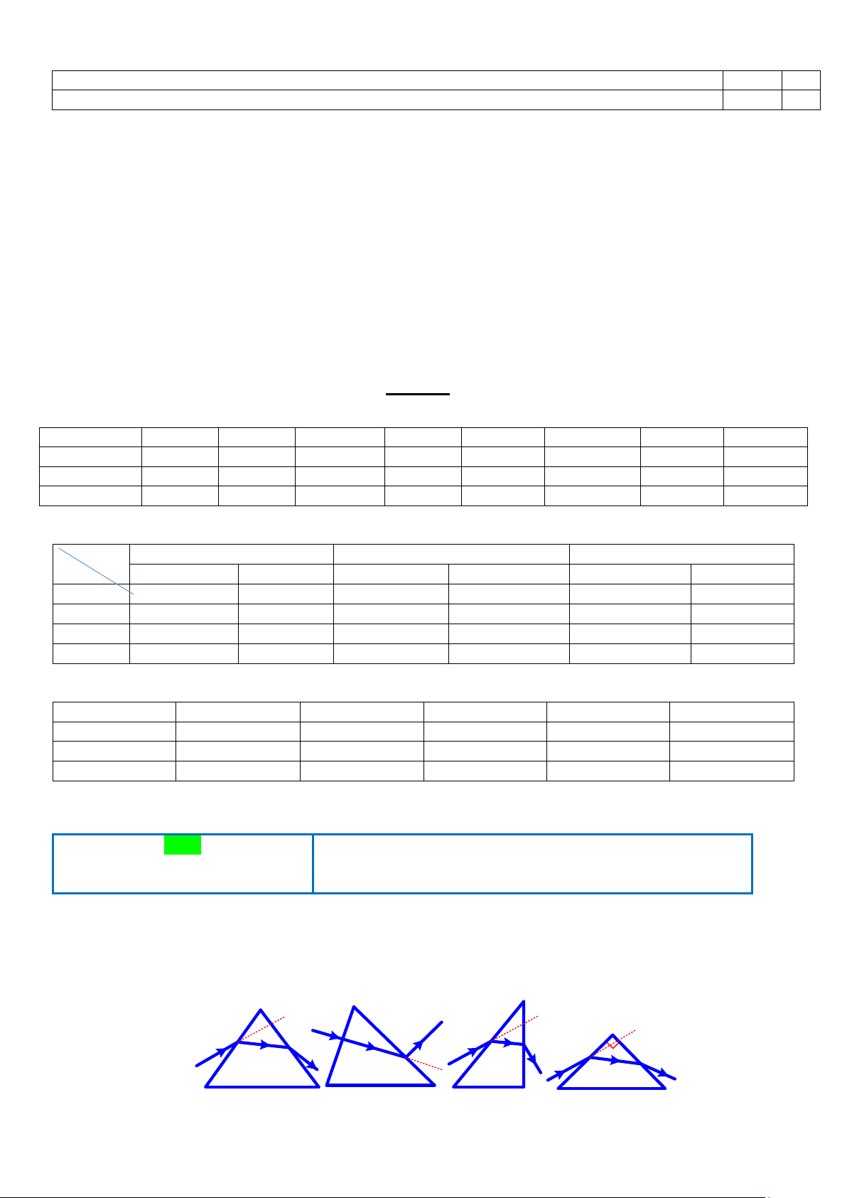 Câu 1: Đường đi của tia sáng qua lăng kính đặt trong không khí hình vẽ nào là không đúng? Hình 1 Hình 2 Hình 3 Hình 4
