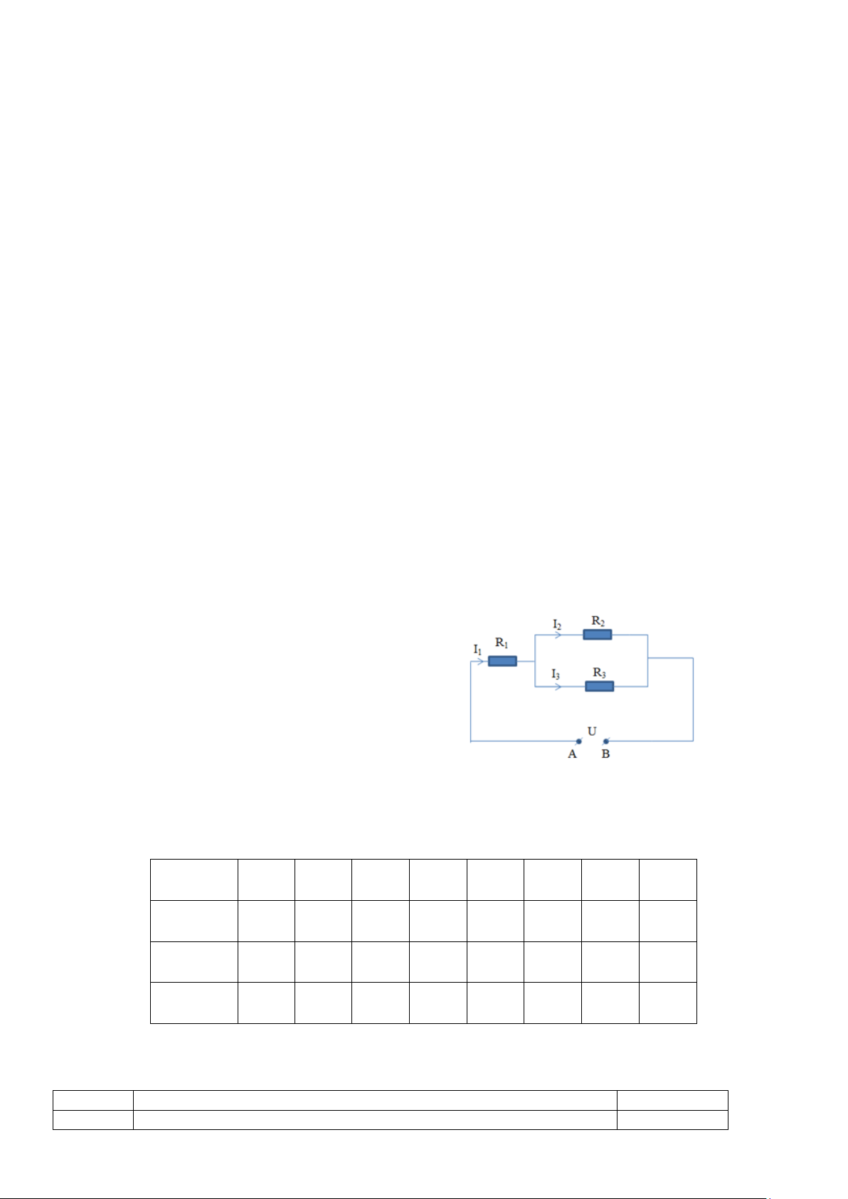 Câu 3 (2,5 điểm): Cho mạch điện gồm R1 = 20 , R2 = R3 = 5 mắc nối tiếp với nhau. UAB = 12V.