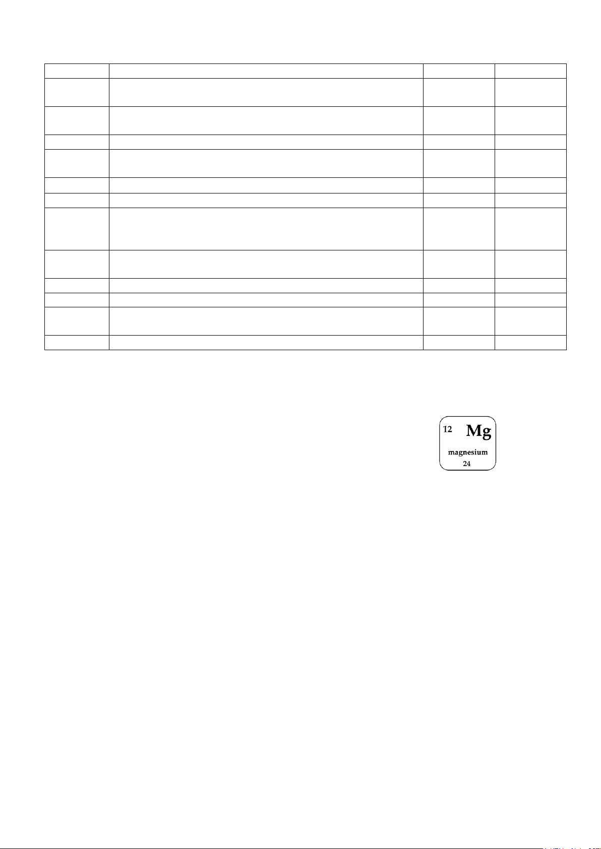 III. Trắc nghiệm điền đáp án ngắn Đáp án Điểm Câu 1: a. 0.25 - Số hạt electron:12 - Số hiệu nguyên tử:12 - Kí hiệu hóa học Mg