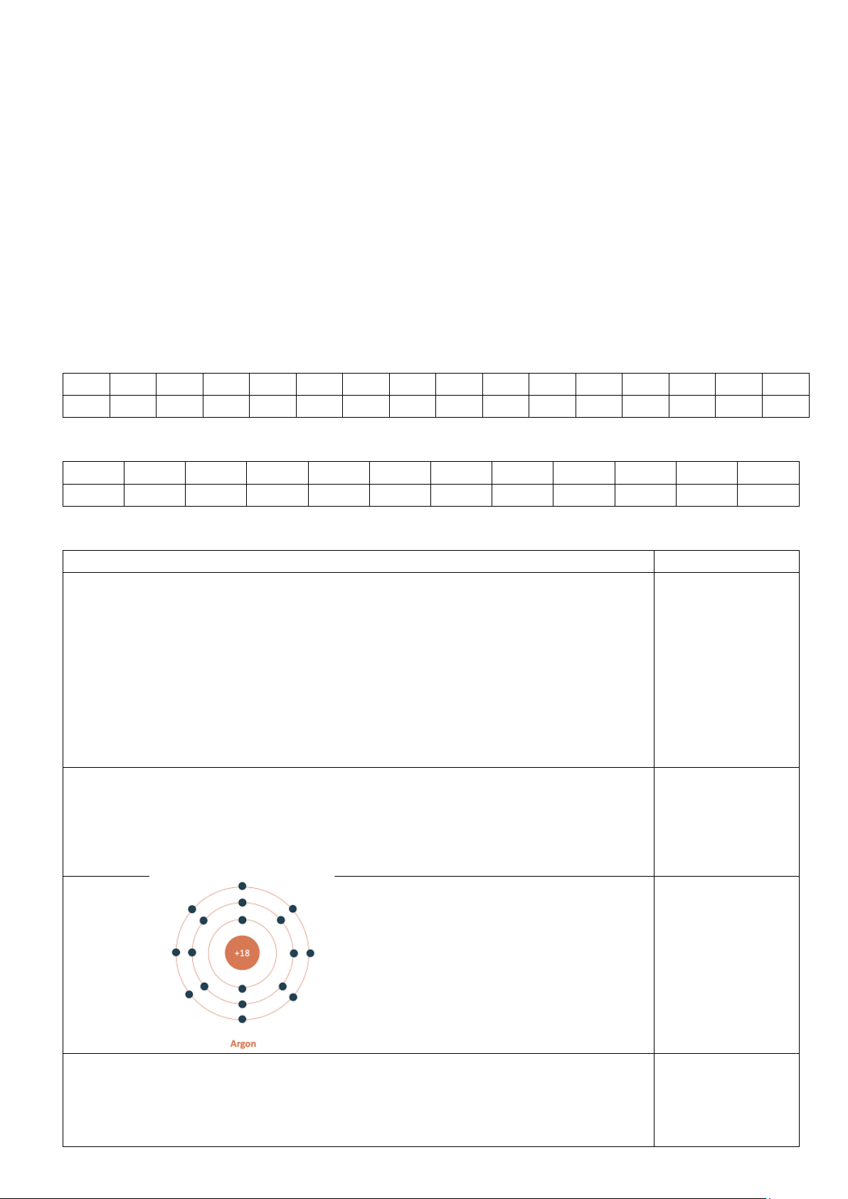 Câu 2: Nguyên tố X có số hiệu nguyên tử là 18, chu kì 3, nhóm VIIIA trong bảng tuần hoàn các nguyên tố hóa học. a. Hãy xác định