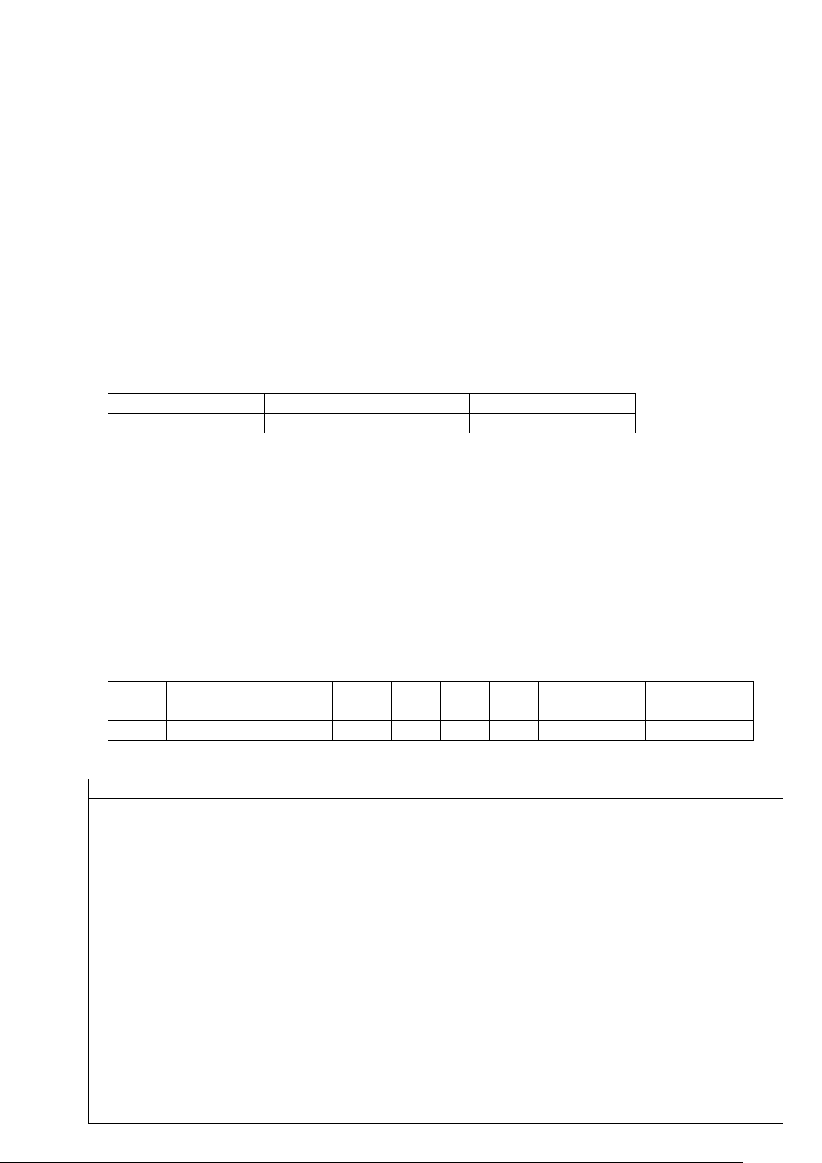 PHẦN III. Câu trắc nghiệm trả lời ngắn. Mỗi câu đúng được 0.5 điểm. Câu Đáp án Điểm Câu Đáp án Điểm Câu 20 102 (amu) 0,5 đ Câu 23 111 (amu) 0,5 đ Câu 21 52,94 % 0,5 đ Câu 24 6 0,5 đ Câu 22 3 lớp electron 0,5 đ Câu 25 10 0,5 đ ĐỀ 7