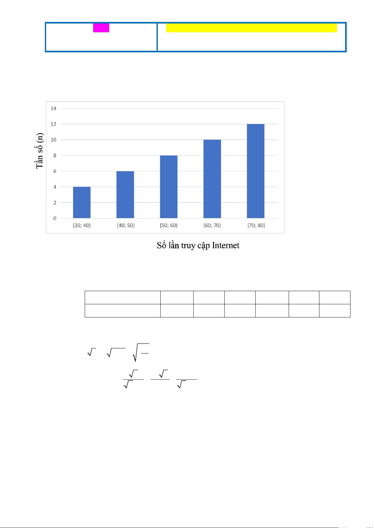 thành, người ta có bảng tần số ghép nhóm như sau: Nhóm 𝟏𝟎; 𝟐𝟎) 𝟐𝟎; 𝟑𝟎) 𝟑𝟎; 𝟒𝟎) 𝟒𝟎; 𝟓𝟎) Cộng Tần số (n) 7 16 27 10 60