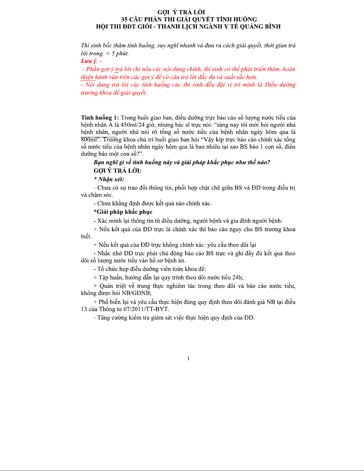 BỘ 35 TÌNH HUỐNG DÀNH CHO CÁC ĐIỀU DƯỠNG TRONG THI THÁCH ĐẤU