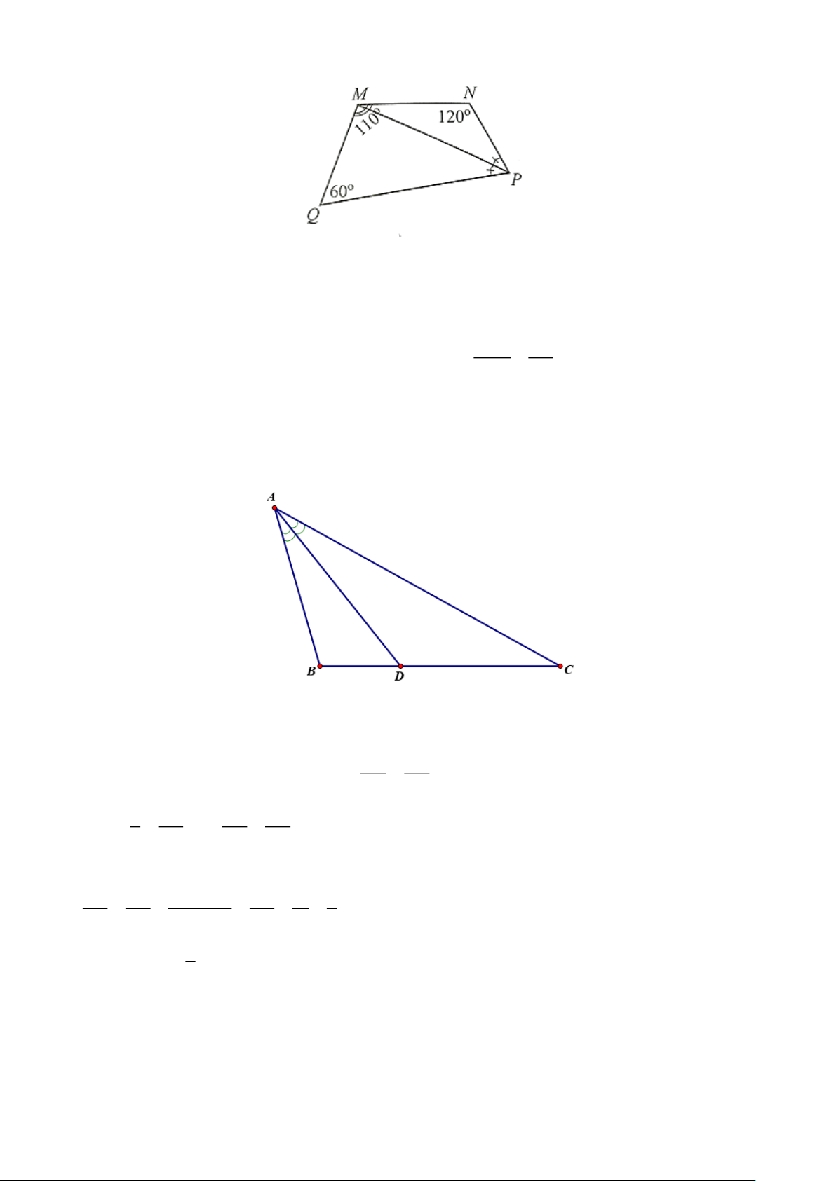 Câu 17. Cho tứ giác MNPQ có PM là tia phân giác của góc NP . Q Biết QMN =110 , N =120 và Q = 60 . Tính số đo của