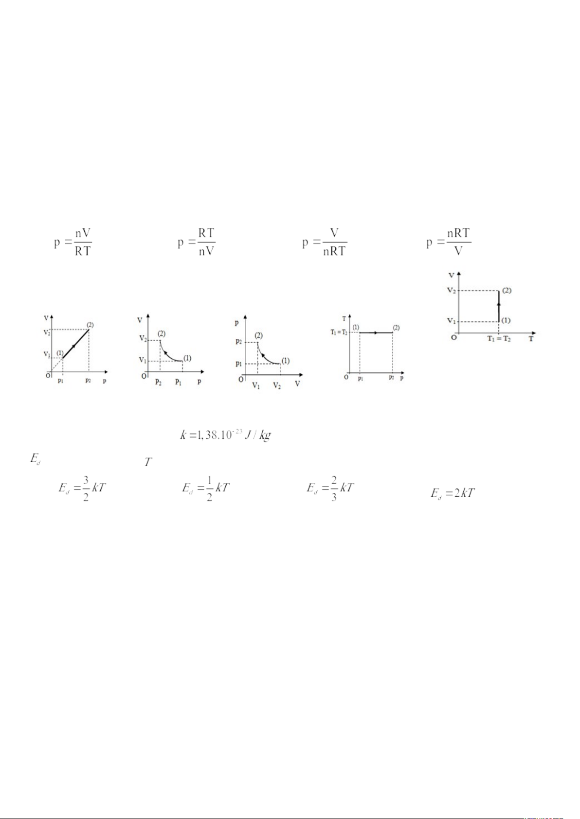 Câu 12: Một khối khí có n mol khí, có nhiệt độ tuyệt đối T, có thể tích V thì áp suất p tác dụng lên thành bình là