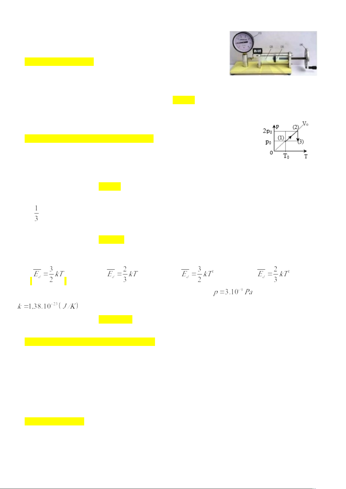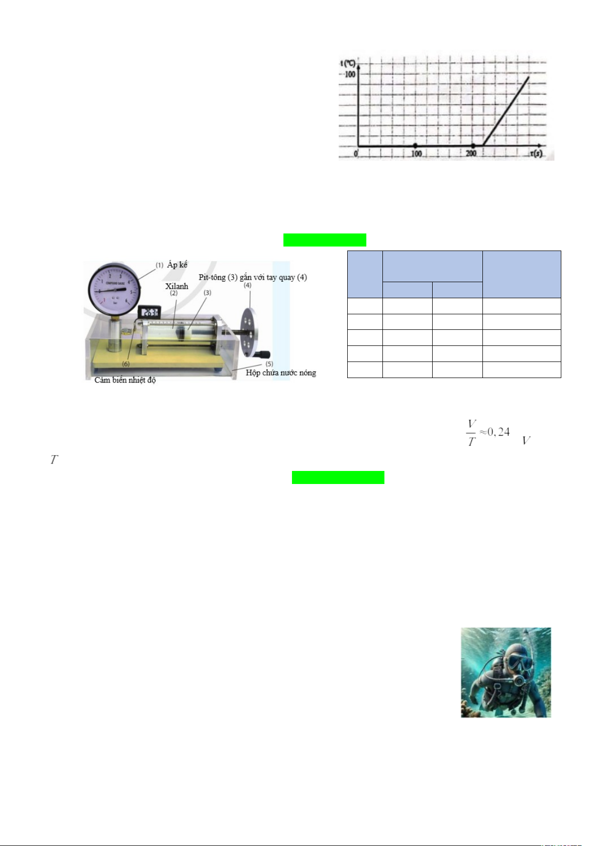 Câu 2: Có thể sử dụng bộ thí nghiệm (hình bên) để tìm hiểu về mối liên hệ giữa thể tích và nhiệt độ tuyệt đối của một lượng khí xác định ở một áp suất không đổi p = 1,013.105Pa .