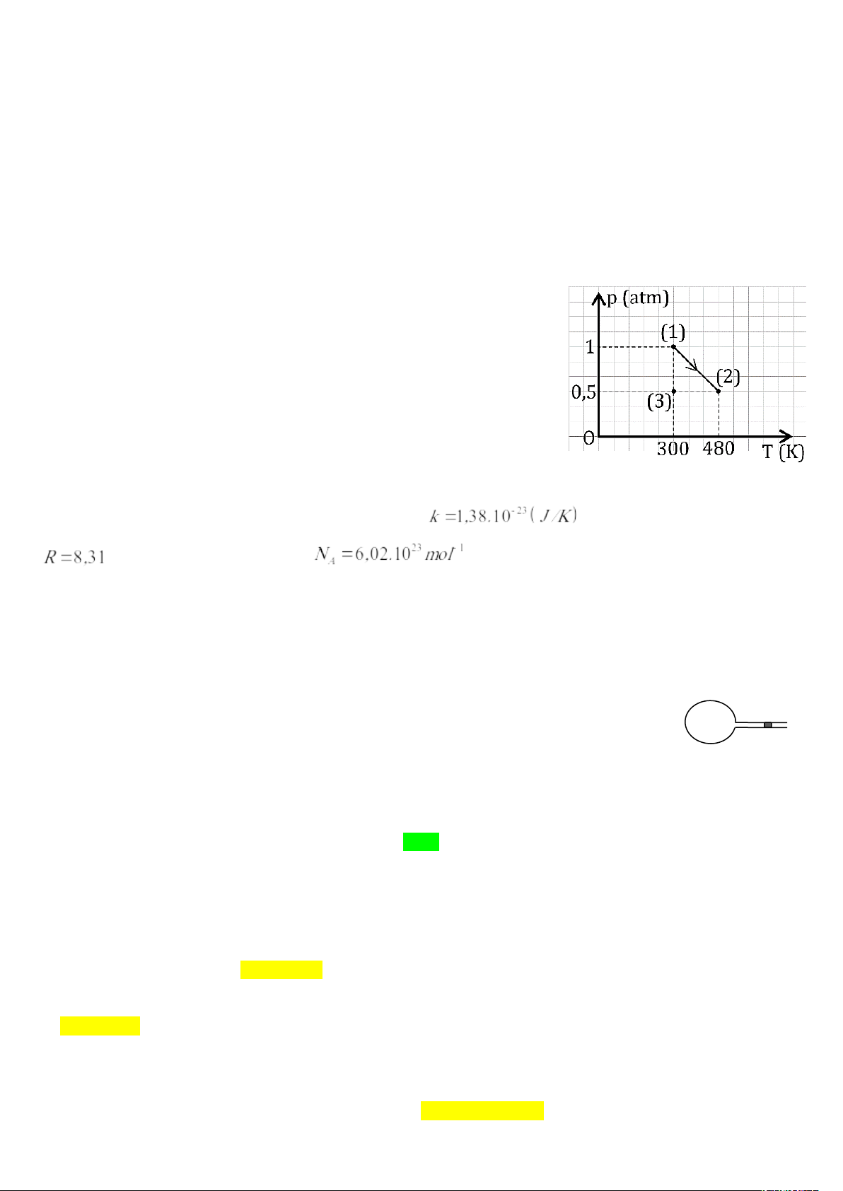 Câu 3. Một khối khí lí tưởng ở trạng thái (1) được xác định bởi các thông số . Người ta cho khối khí biến đổi đẳng áp tới trạng thái (2) có