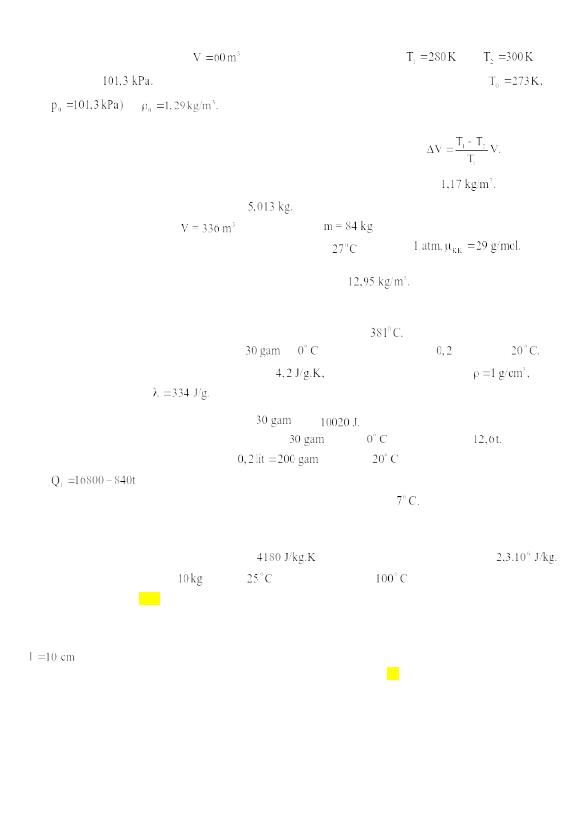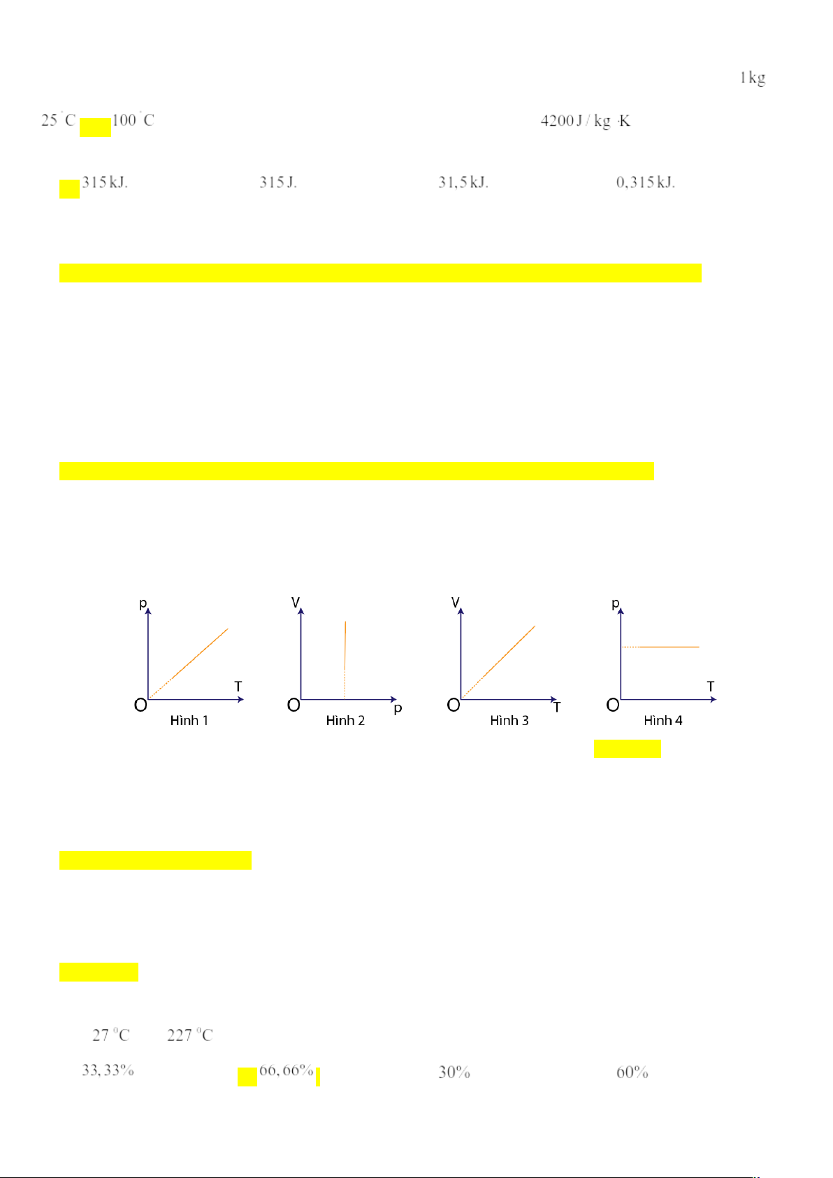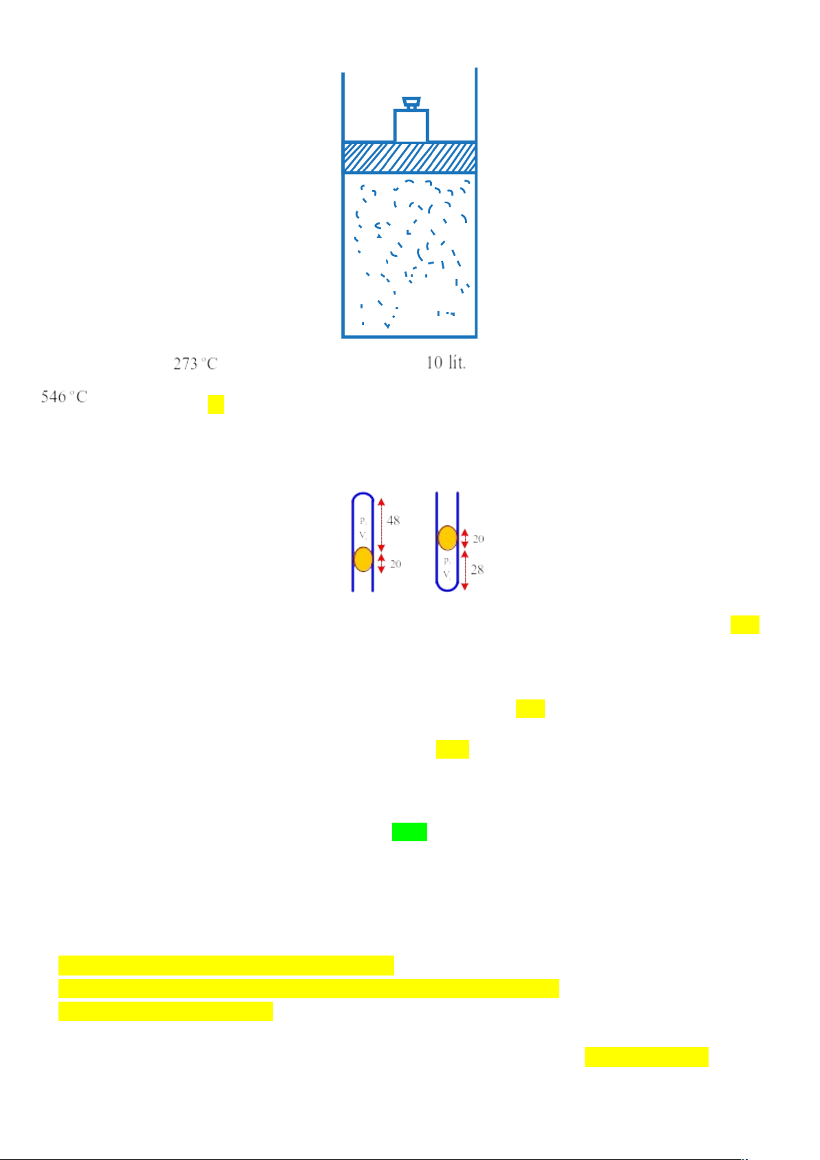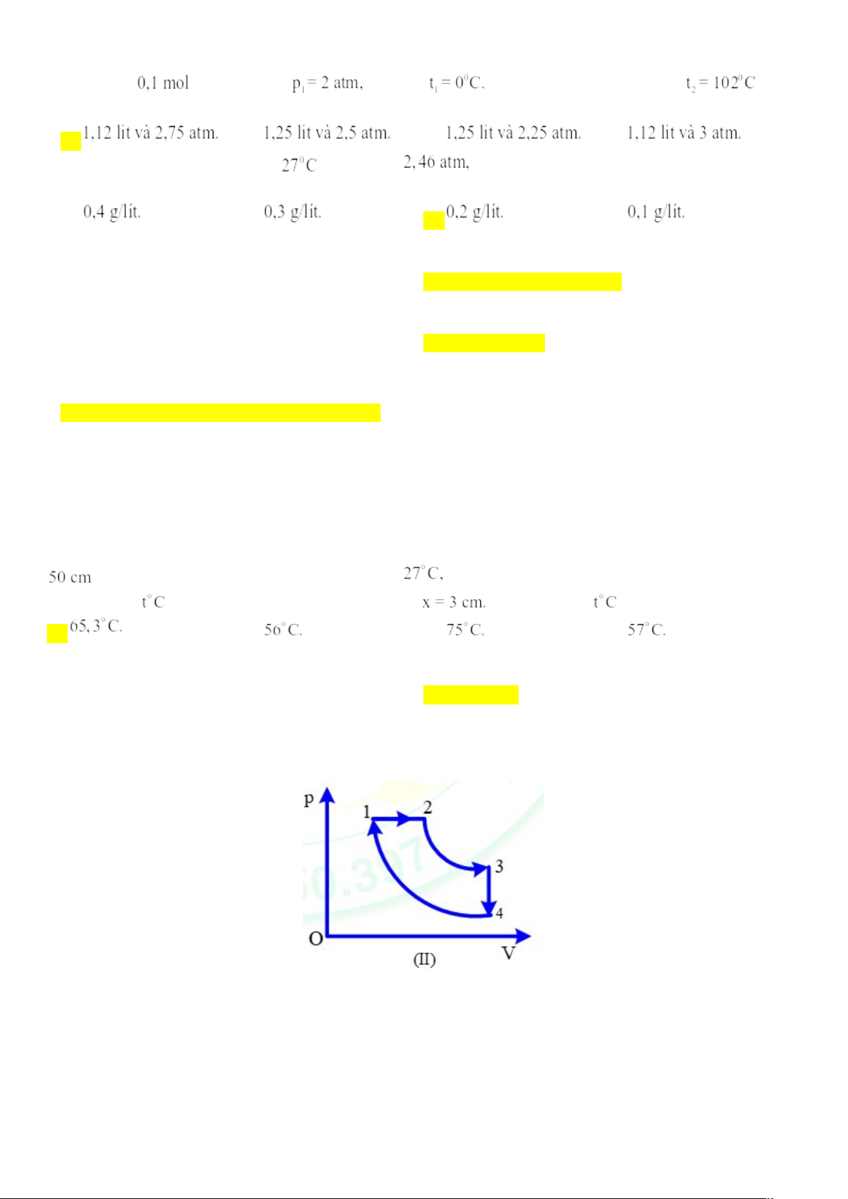 Câu 10: Biết 12g khí chiếm thể tích 4 lít ở 70C. Sau khi nung nóng đẳng áp, khối lượng riêng của khí là 1,2g/lít. Nhiệt độ của khối khí sau khi nung nóng là