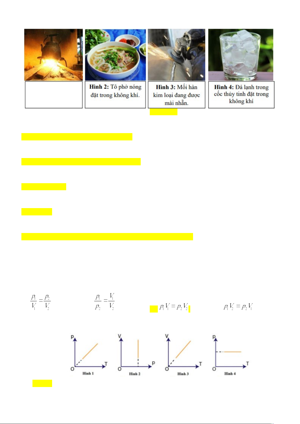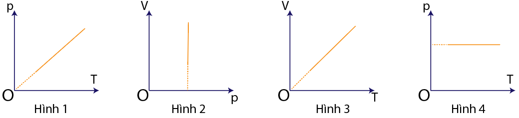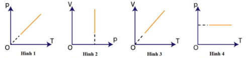 Câu 9. Cho p là áp suất, V là thể tích, T(K) là nhiệt độ tuyệt đối của một lượng khí lí tưởng xác định. Hình nào dưới đây biểu diễn quá trình biển đổi trạng thái của lượng khí đó khác với các hình còn lại?