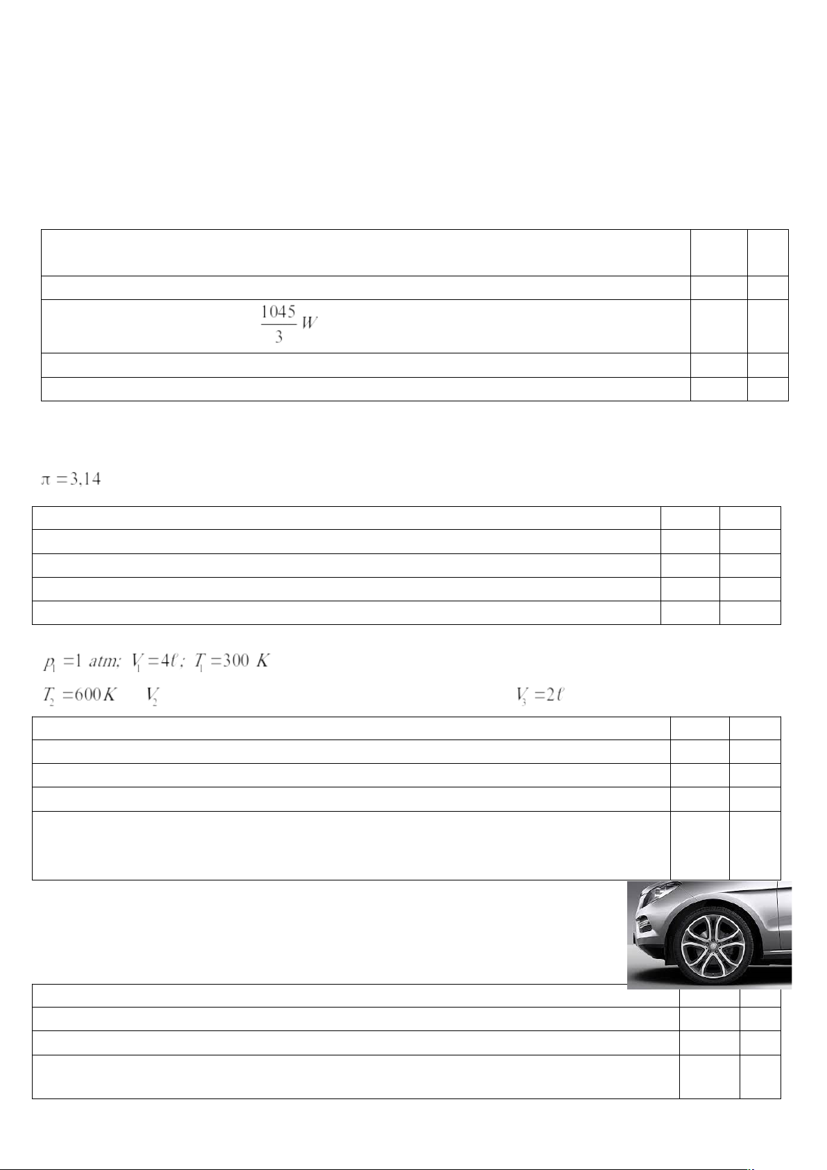 Câu 2. Một khí lí tưởng có thể tích 10 lít ở 270C áp suất 1 atm, biến đổi qua hai quá trình: quá trình đẳng tích áp suất tăng gấp 2 lần; rồi quá trình đẳng áp, thể tích sau cùng là 15 lít. Nhiệt độ sau cùng của khối khí bằng bao nhiêu 0C?