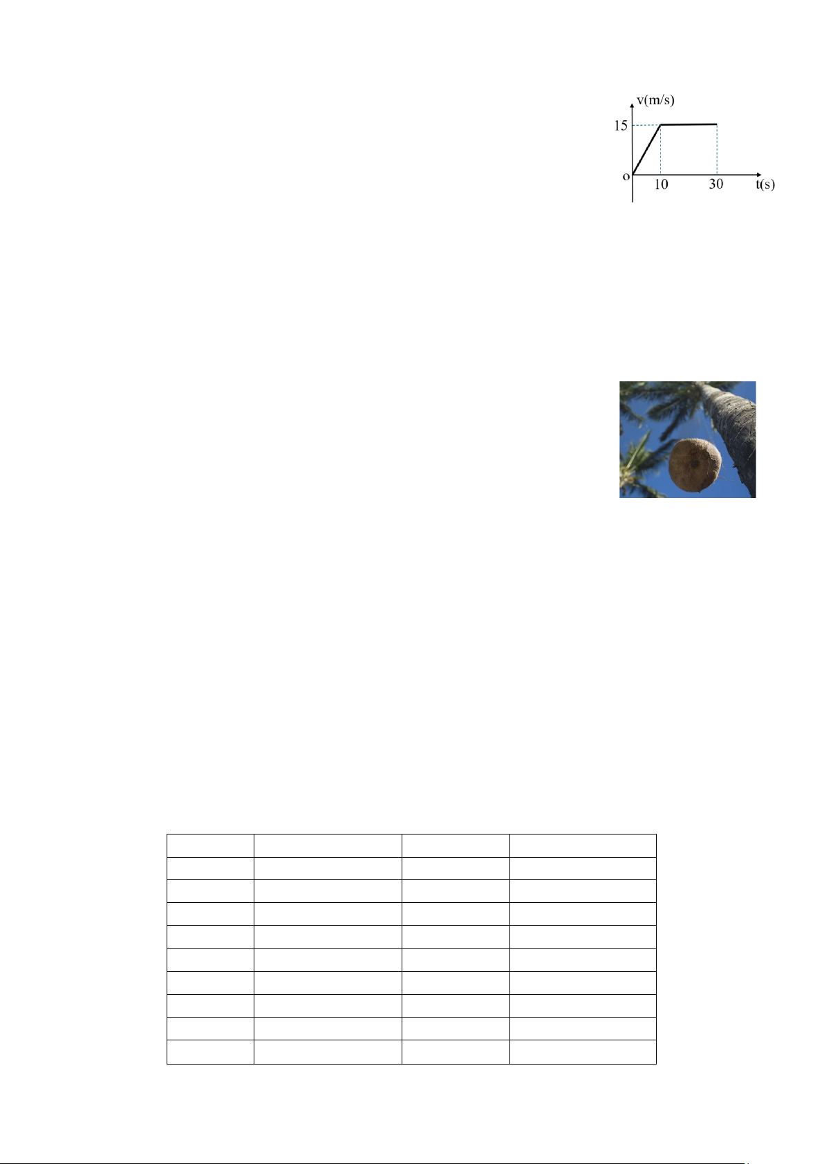 Câu 11. Đồ thị vận tốc – thời gian của một vật chuyển động thẳng biến đổi đều được cho như hình vẽ. Biết