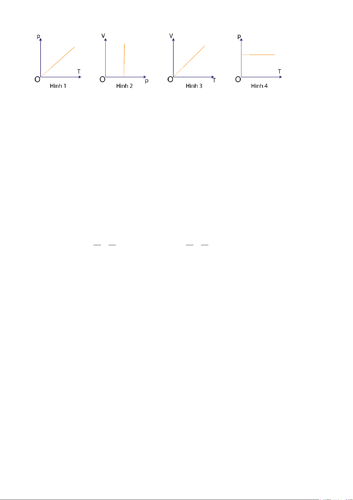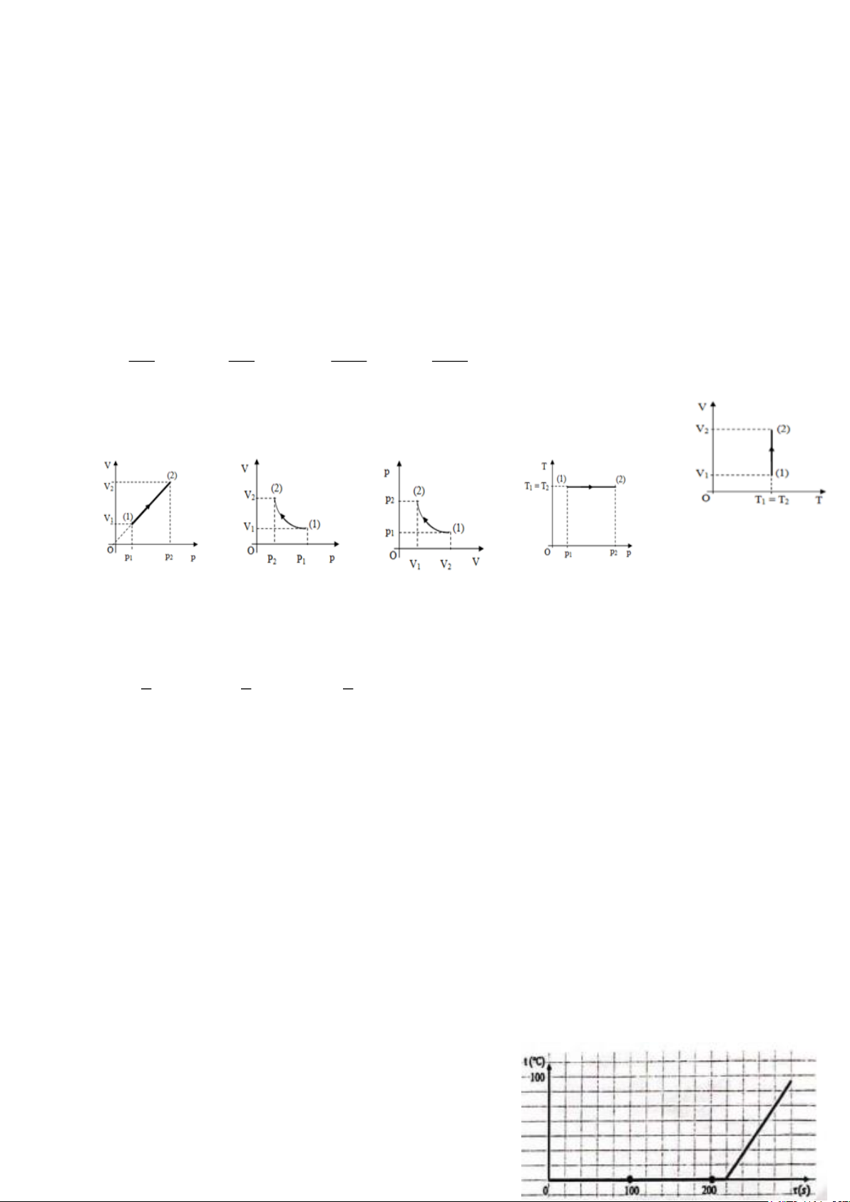 Đồ thị nào dưới đây tương ứng với đồ thị bên biểu diễn đúng quá trình biến đổi trạng thái của khối khí này? p p p p p (2) (1) (1) (2) (2) (1) 2 p1 p 0 p0 (1) p (2) V V 1 p2 0 V 0 1 V2 V2 V1 0 T1 T2 T 0 T2 T1 T 4. 1. 2. 3.