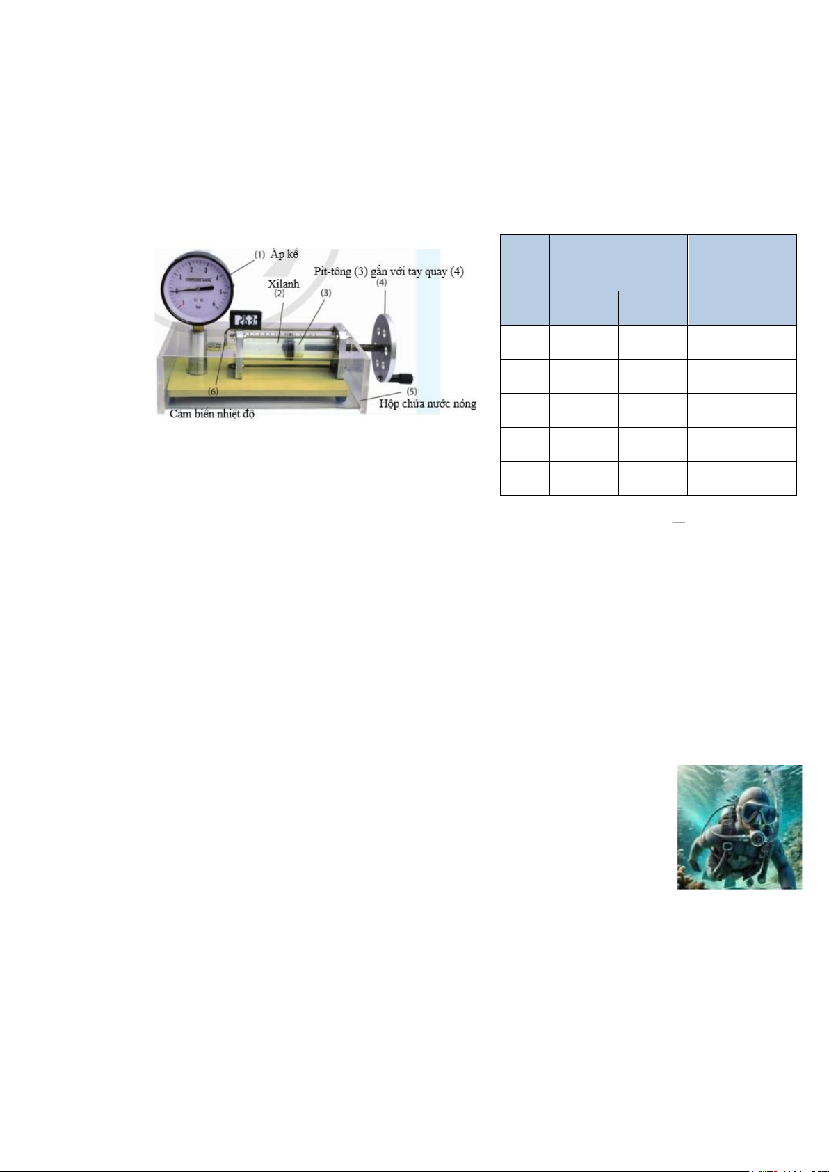 Câu 1. Một lượng khí có thể tích 240 cm3 chứa trong một xilanh có pit-tông đóng kín, diện tích của đáy