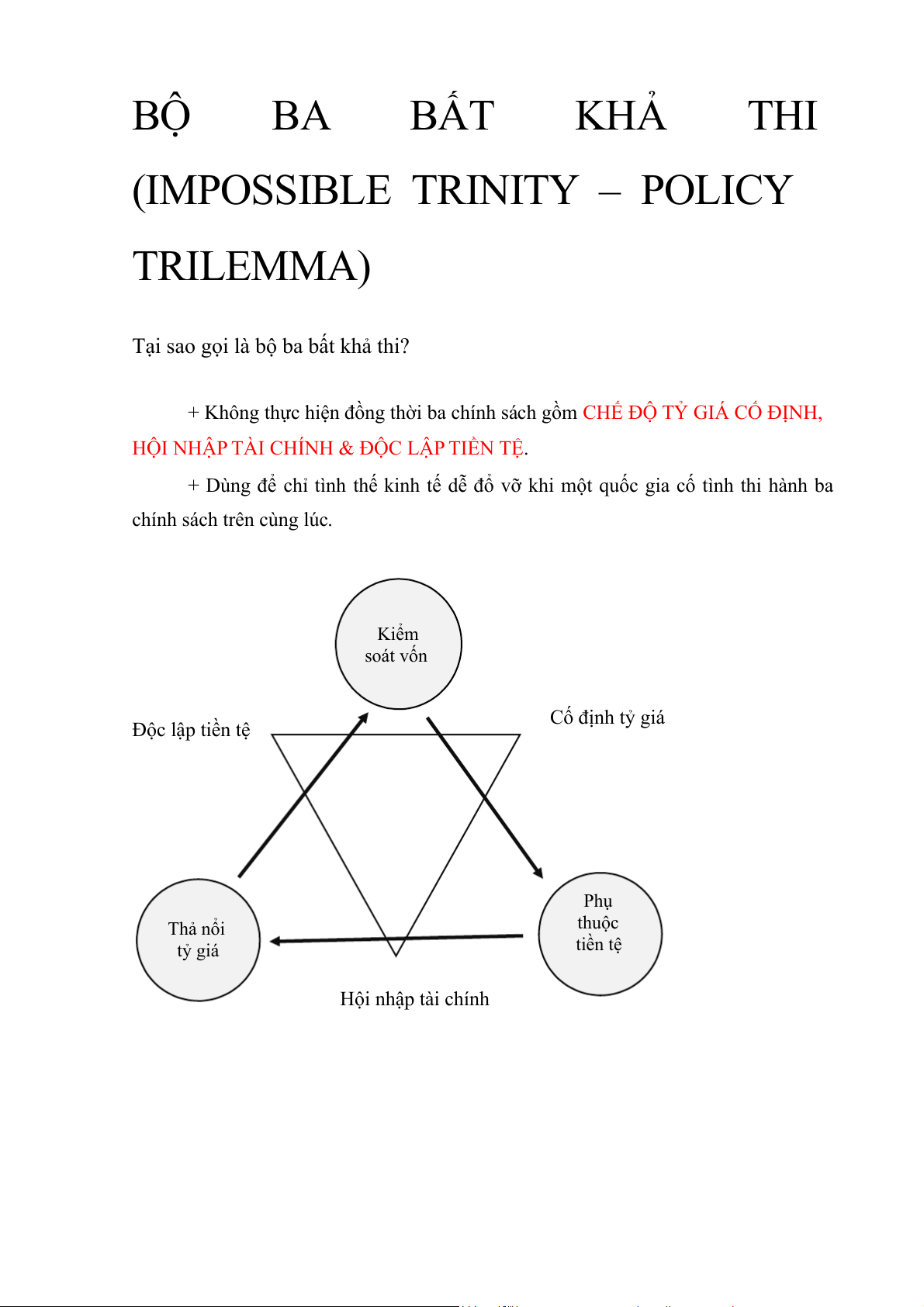 BỘ BA BẤT KHẢ THI (IMPOSSIBLE TRINITY – POLICY TRILEMMA)