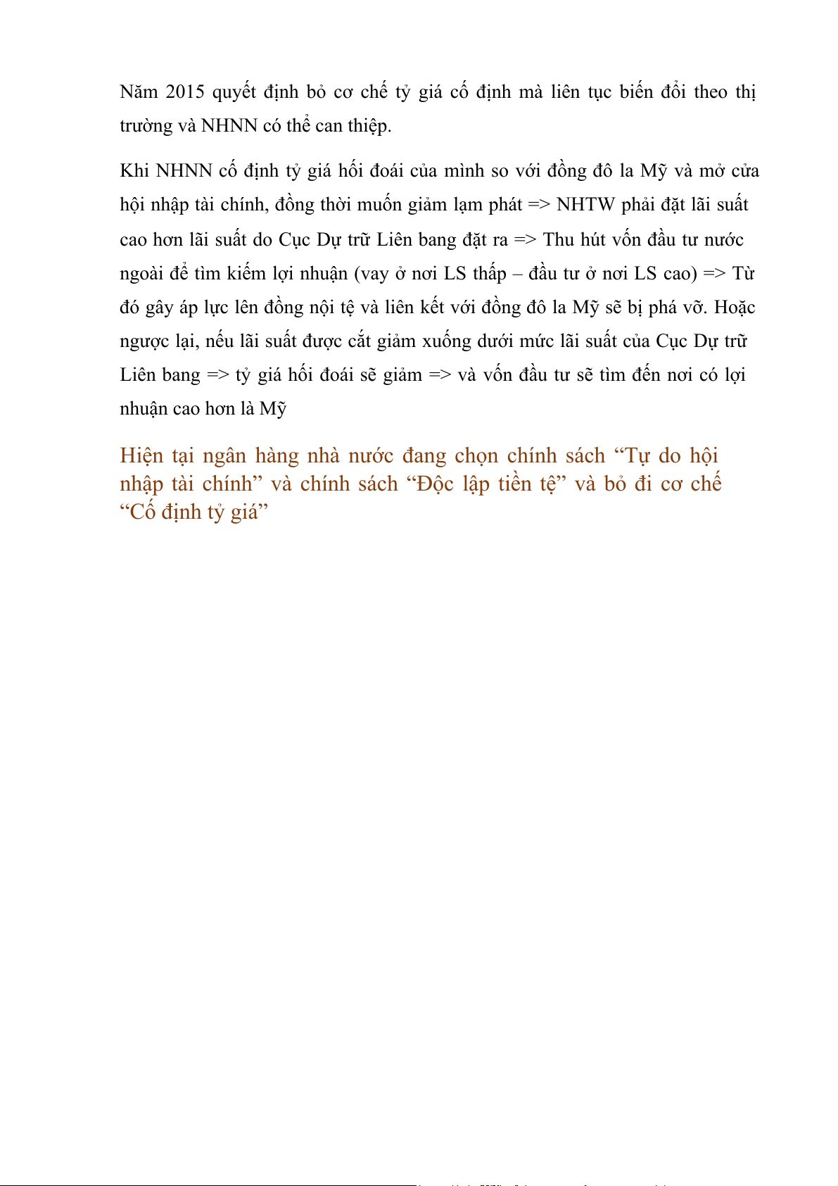 nhập tài chính” và chính sách “Độc lập tiền tệ” và bỏ đi cơ chế “Cố định tỷ giá”