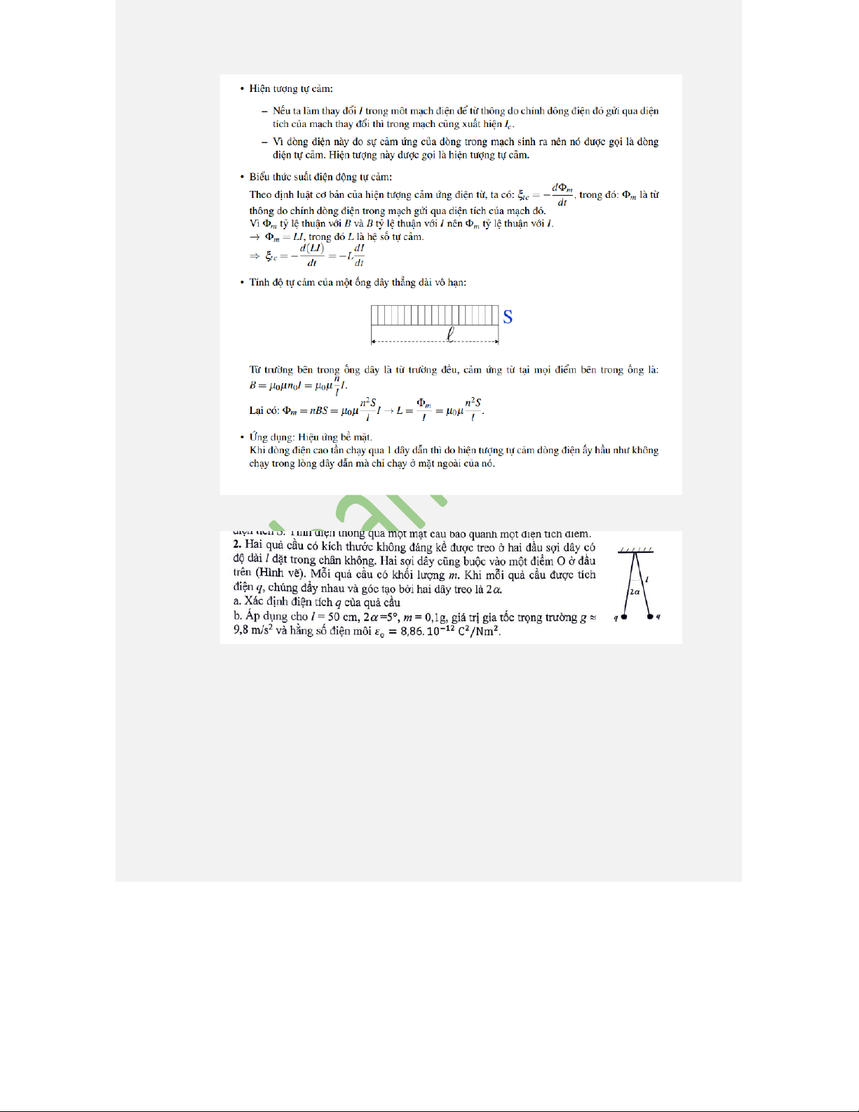 tự cảm và biểu thức tính độ tự cảm của một ống dây thẳng dài vô hạn.