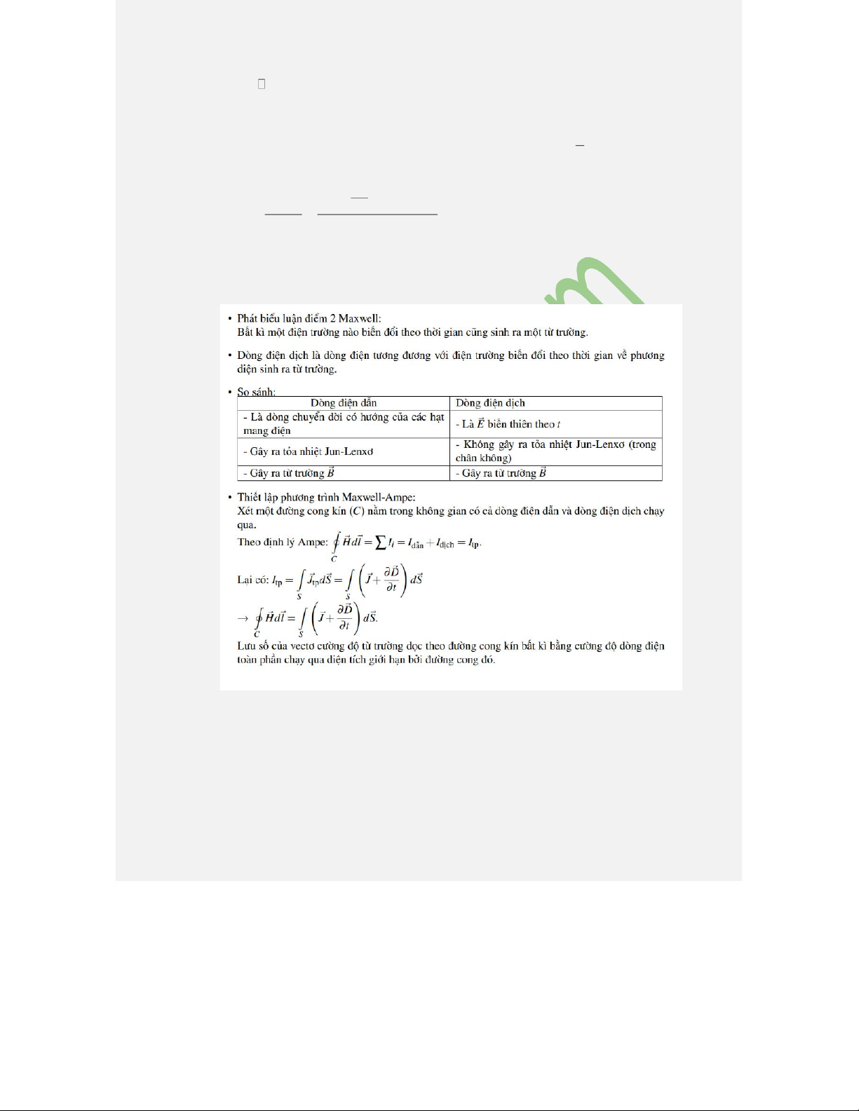 Câu 17: Phát biểu luận điểm 1 của Maxwell. Phân biệt điện trường tĩnh và