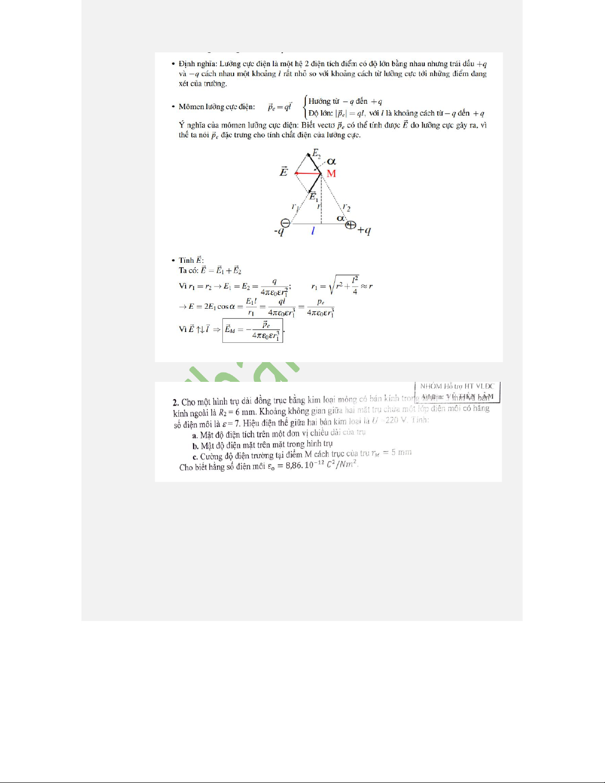 vectơ cường độ điện trường gây bởi lưỡng cực điện tại điểm M nằm trên