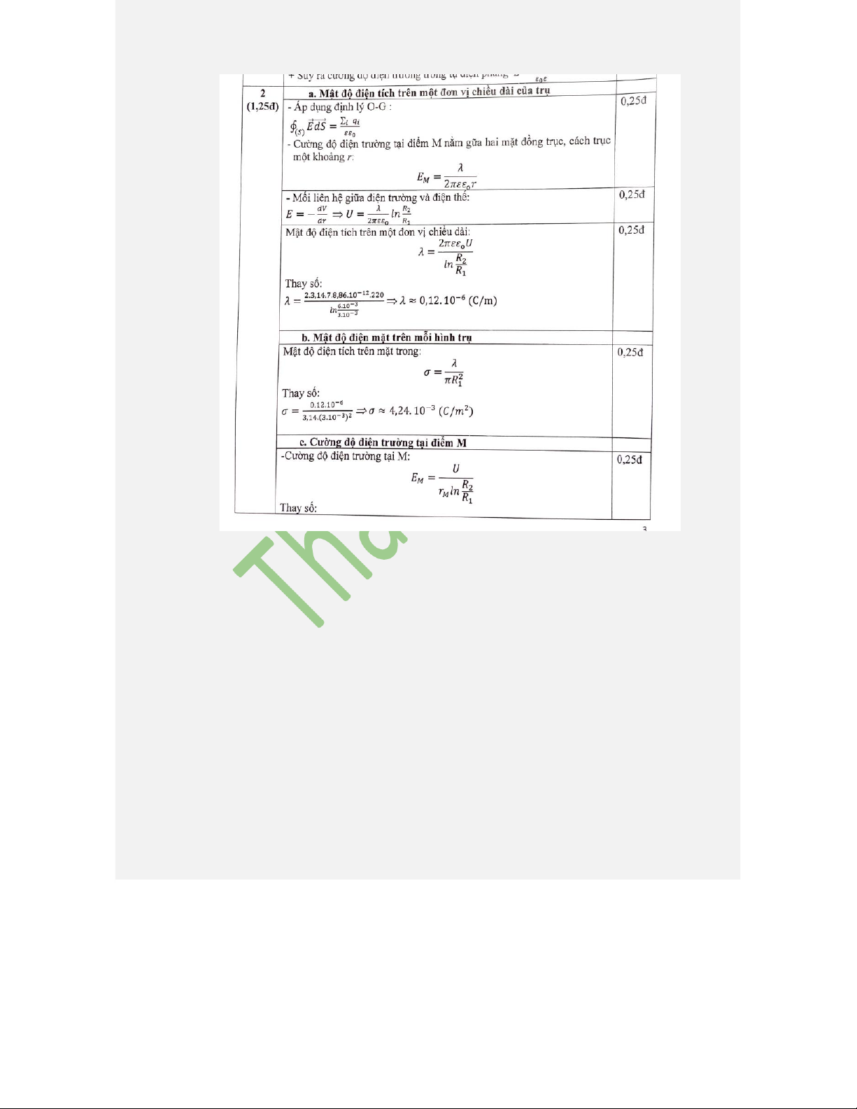 mật độ điện mặt σ, tại điểm M cách trục của trụ một khoảng r > R. 10