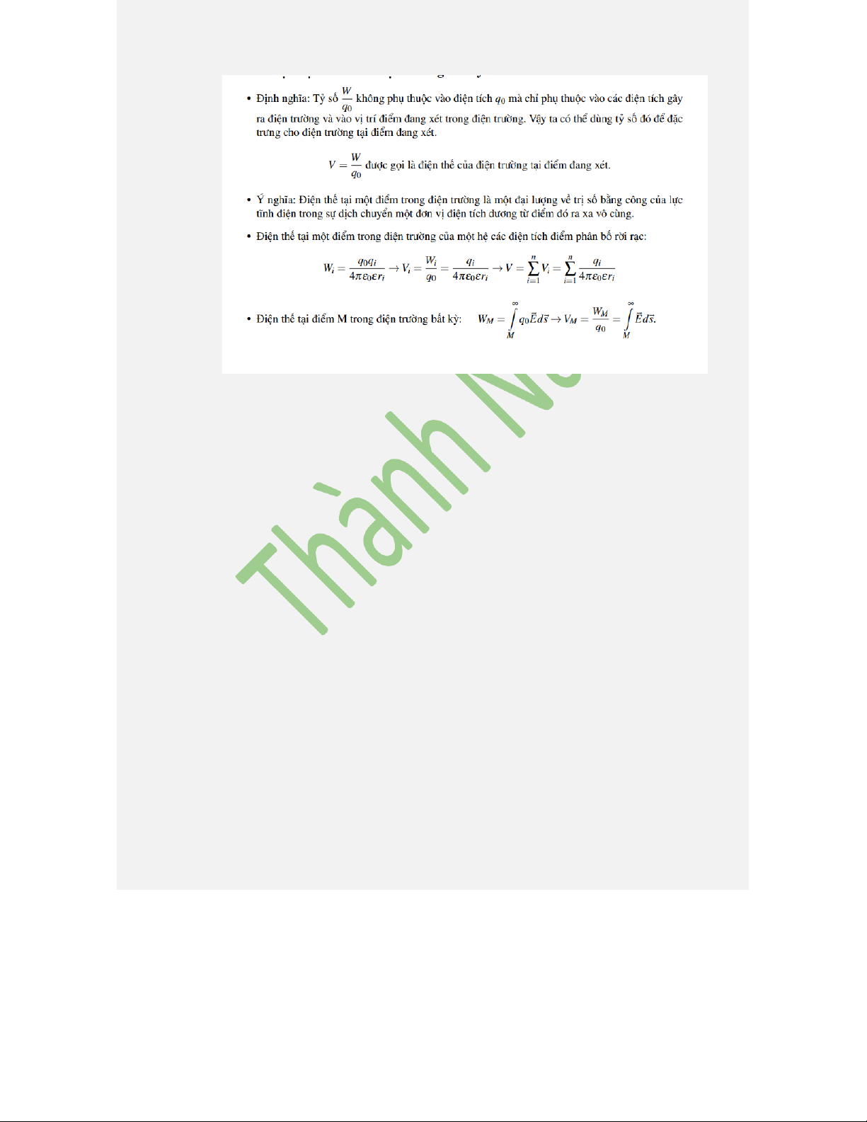 Câu 20: Định nghĩa và nêu ý nghĩa của điện thế. Dẫn ra công thức tính