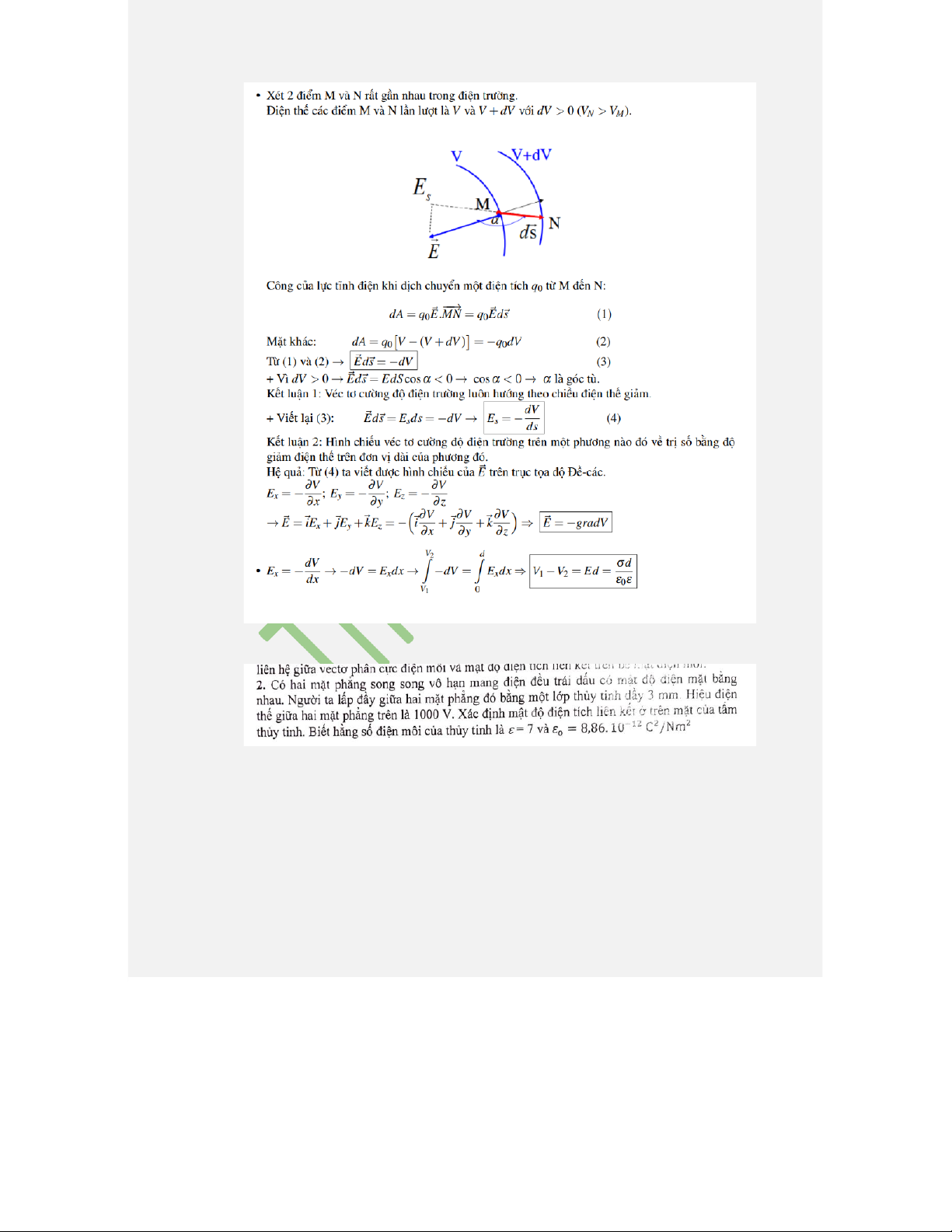 Câu 21: Thiết lập công thức liên hệ giữa vectơ cường độ điện trường và