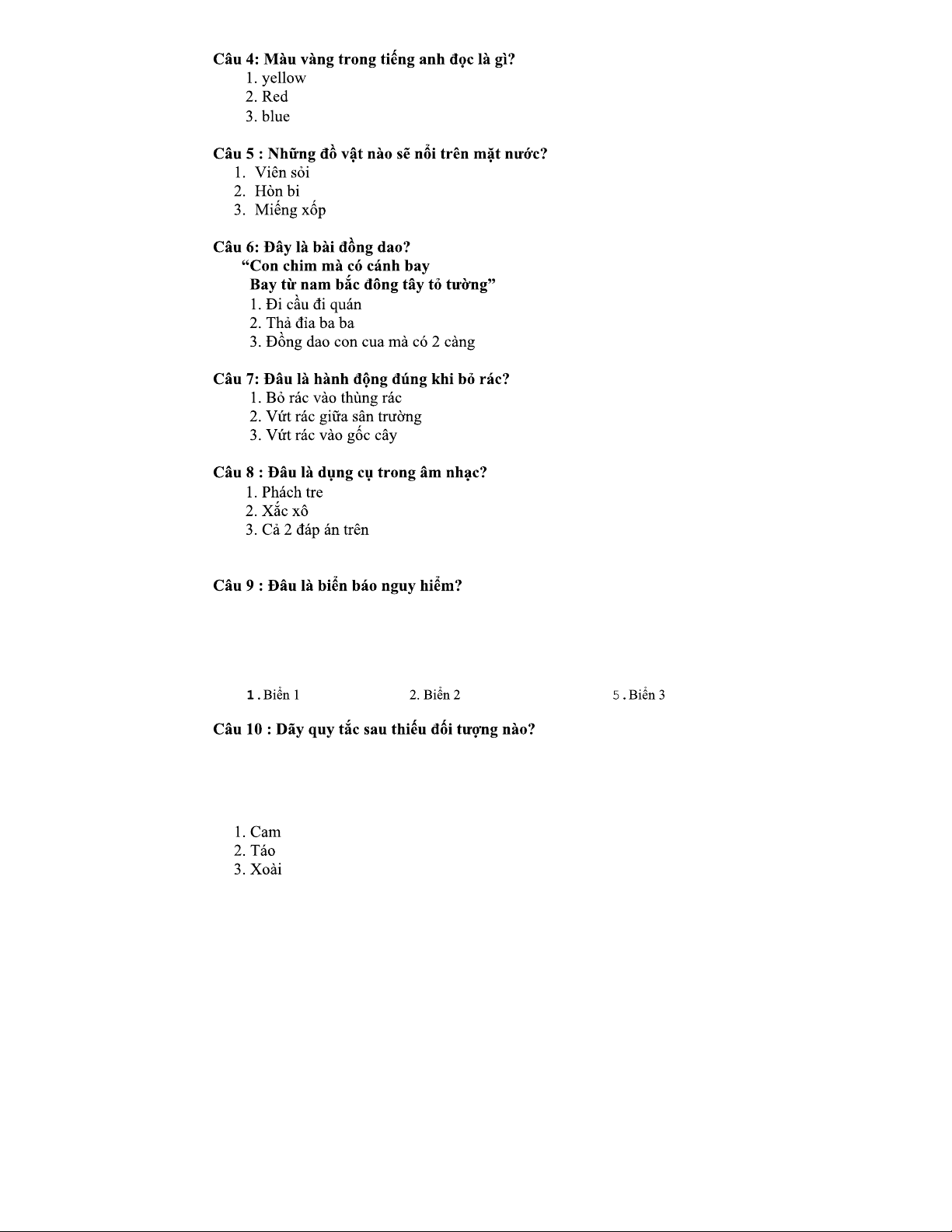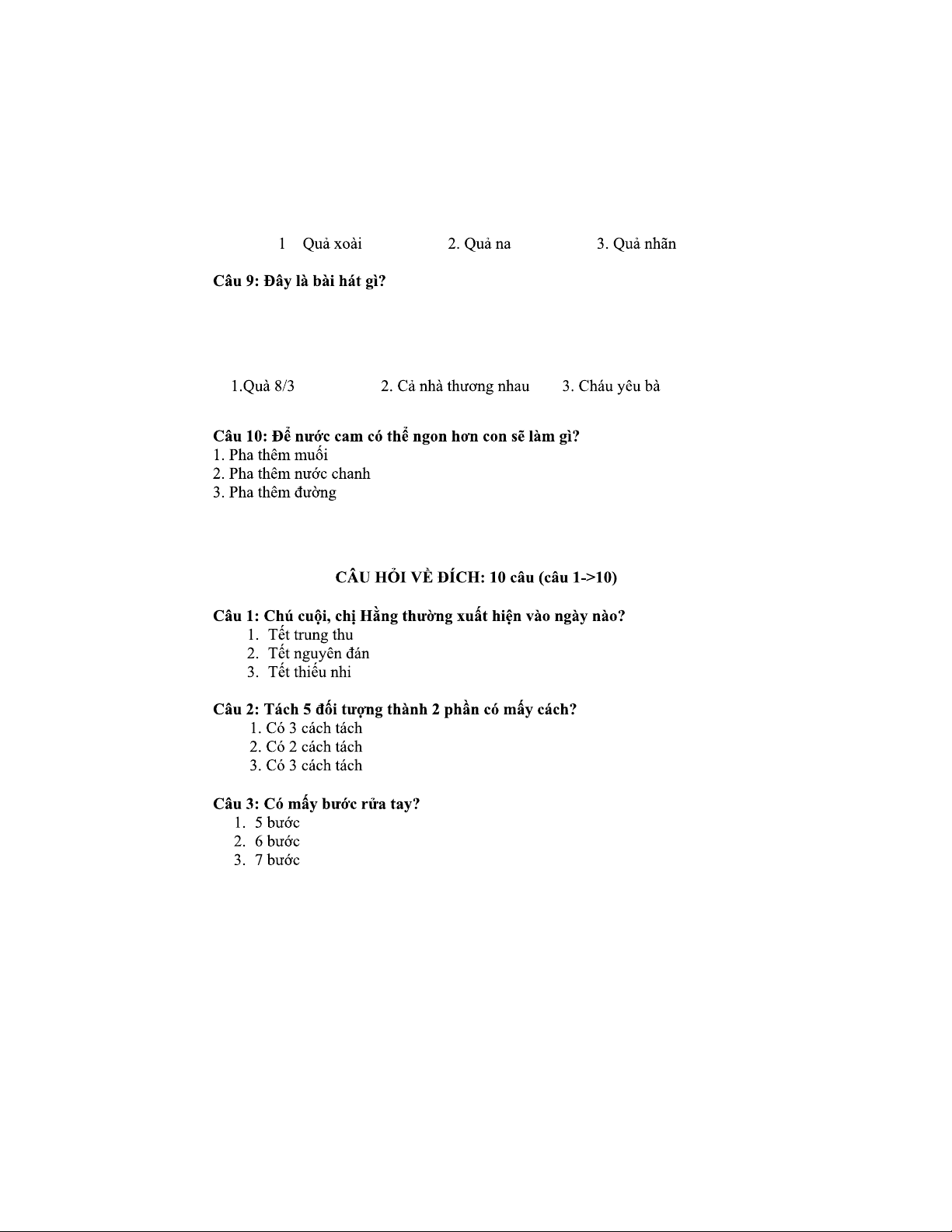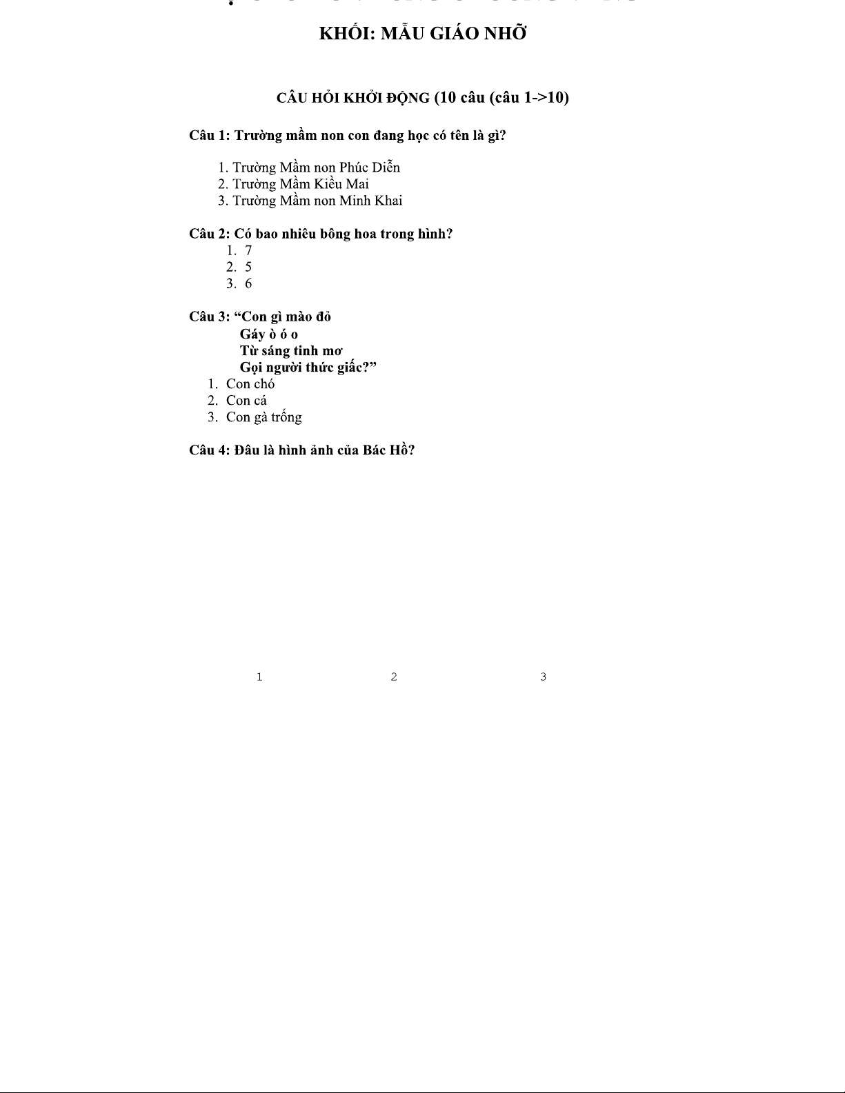 Bộ Câu Hỏi Rung Chuông Vàng Dành Cho Khối Mẫu Giáo Nhỡ