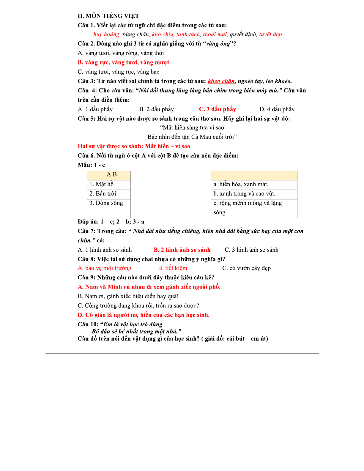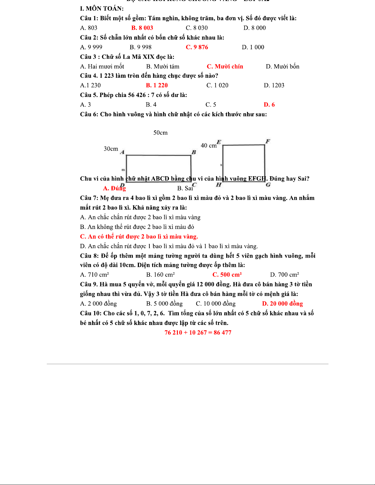 BỘ CÂU HỎI RUNG CHUÔNG VÀNG - LỚP 3A THI TOÁN, TIẾNG VIỆT, CÔNG NGHỆ, ĐẠO ĐỨC