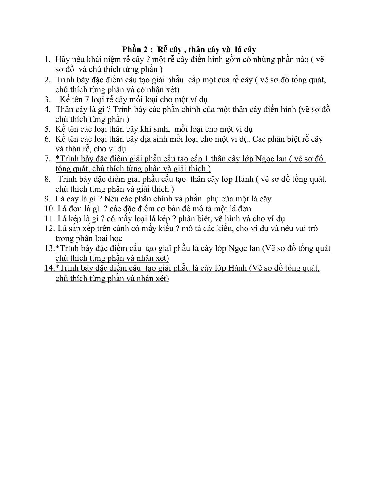 * 1. Hãy nêu khái niệm tế bào Thực vật . Phân biệt hai