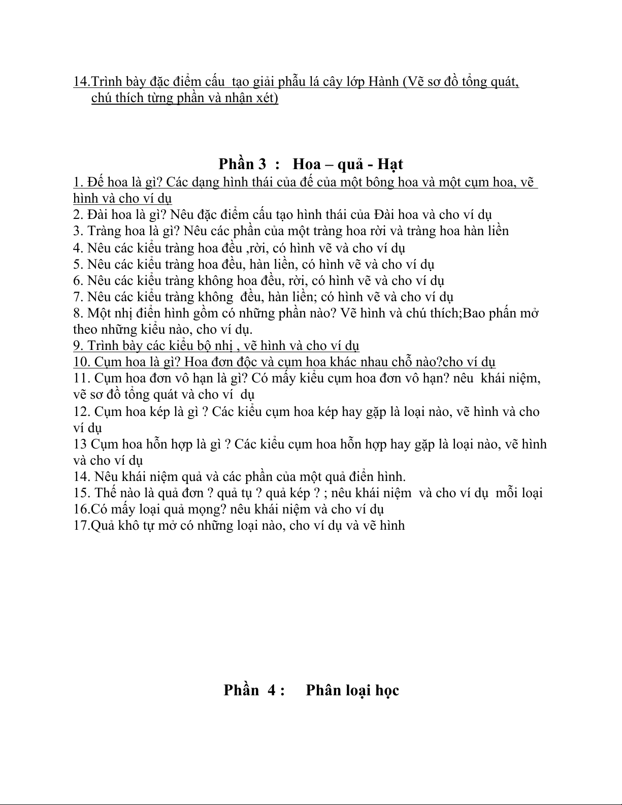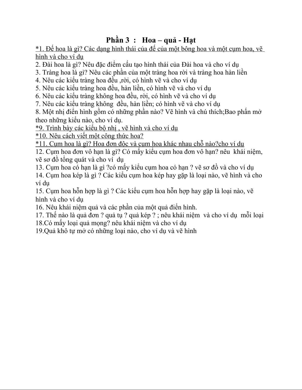 Cấu tạo hoa (cụm hoa, cấu tạo một hoa, hoa thức )1,5 điểm o