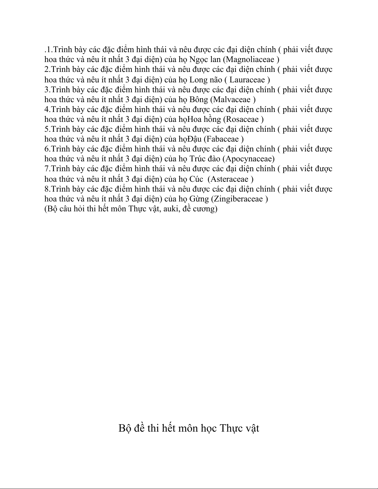 viết được hoa thức và nêu ít nhất 3 đại diện) của họ Cà phê (Rubiaceae) Đề 18