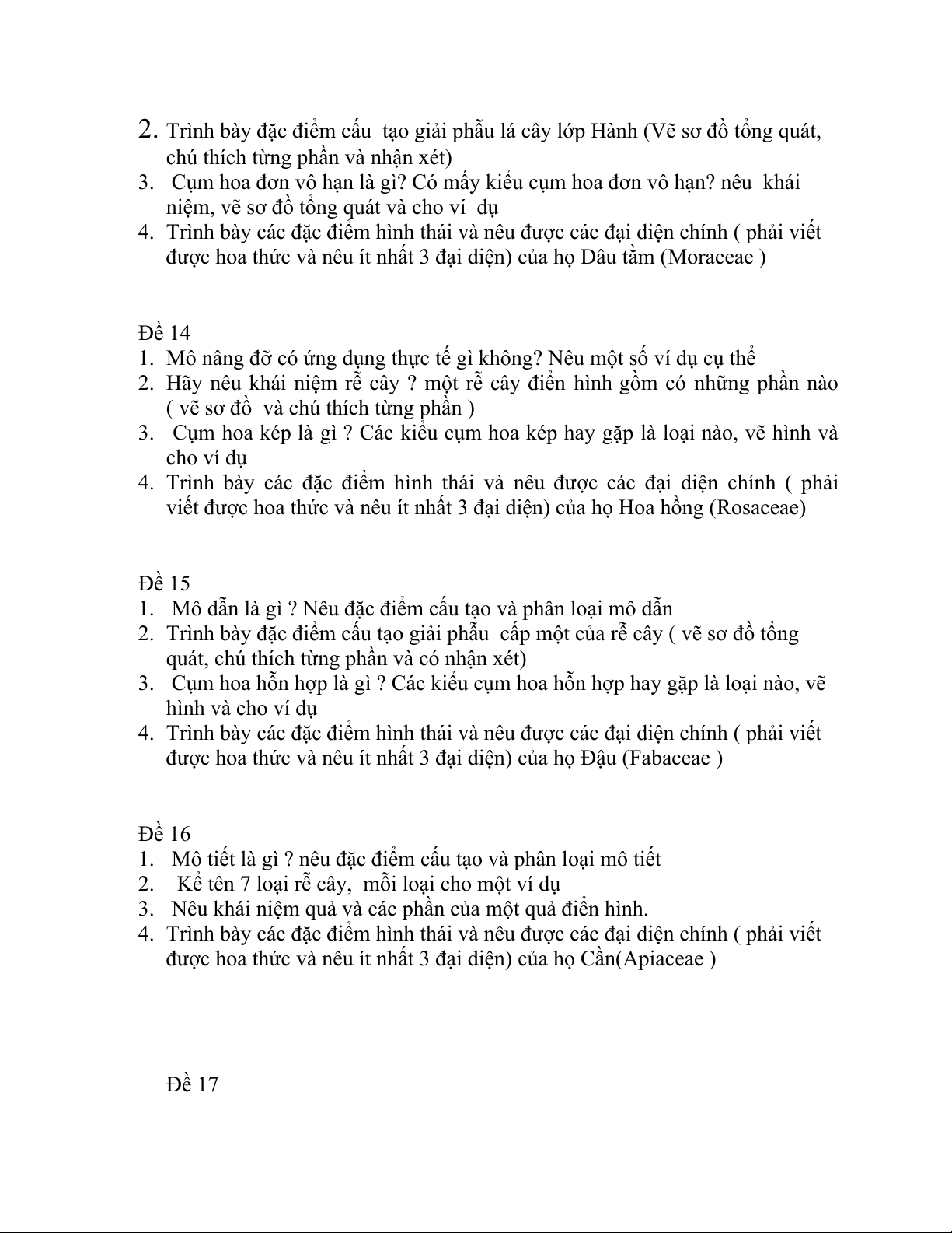 viết được hoa thức và nêu ít nhất 3 đại diện) của họ Hoa hồng (Rosaceae) Đề 15