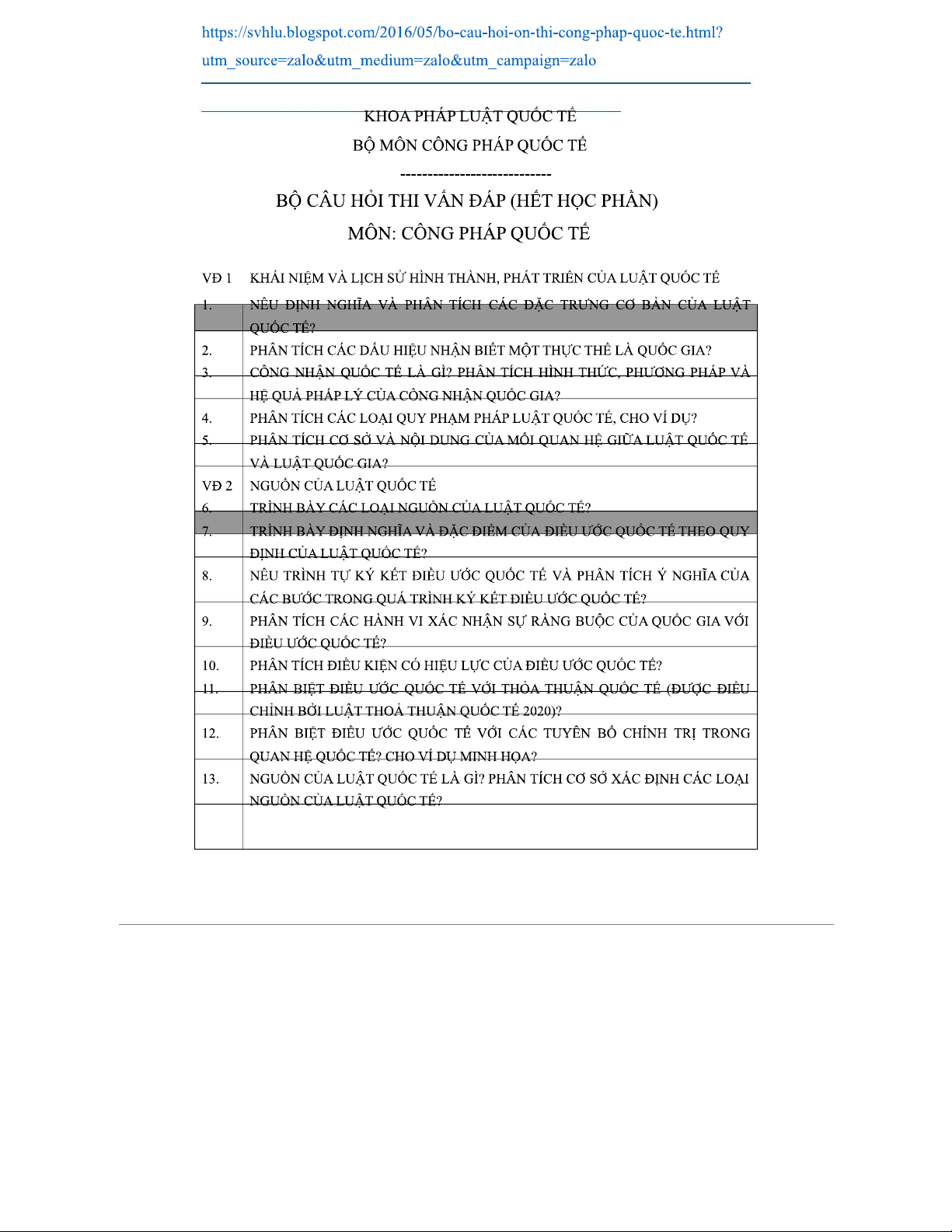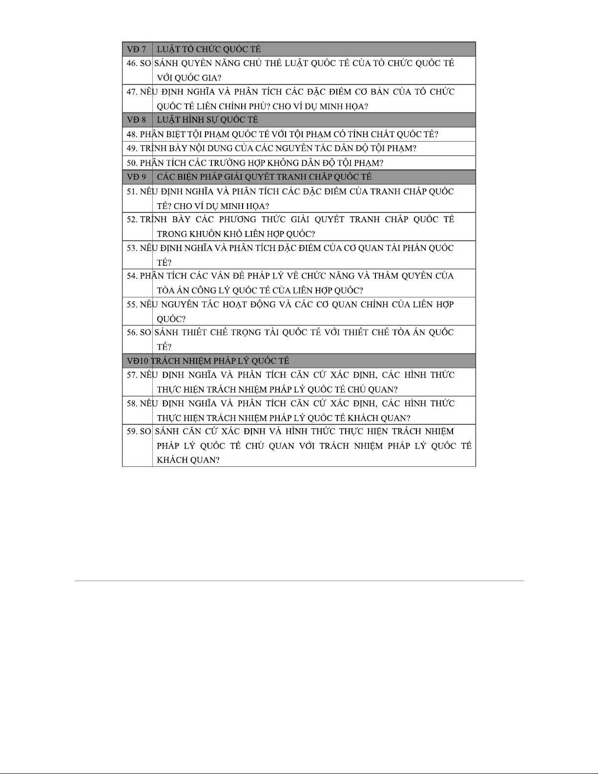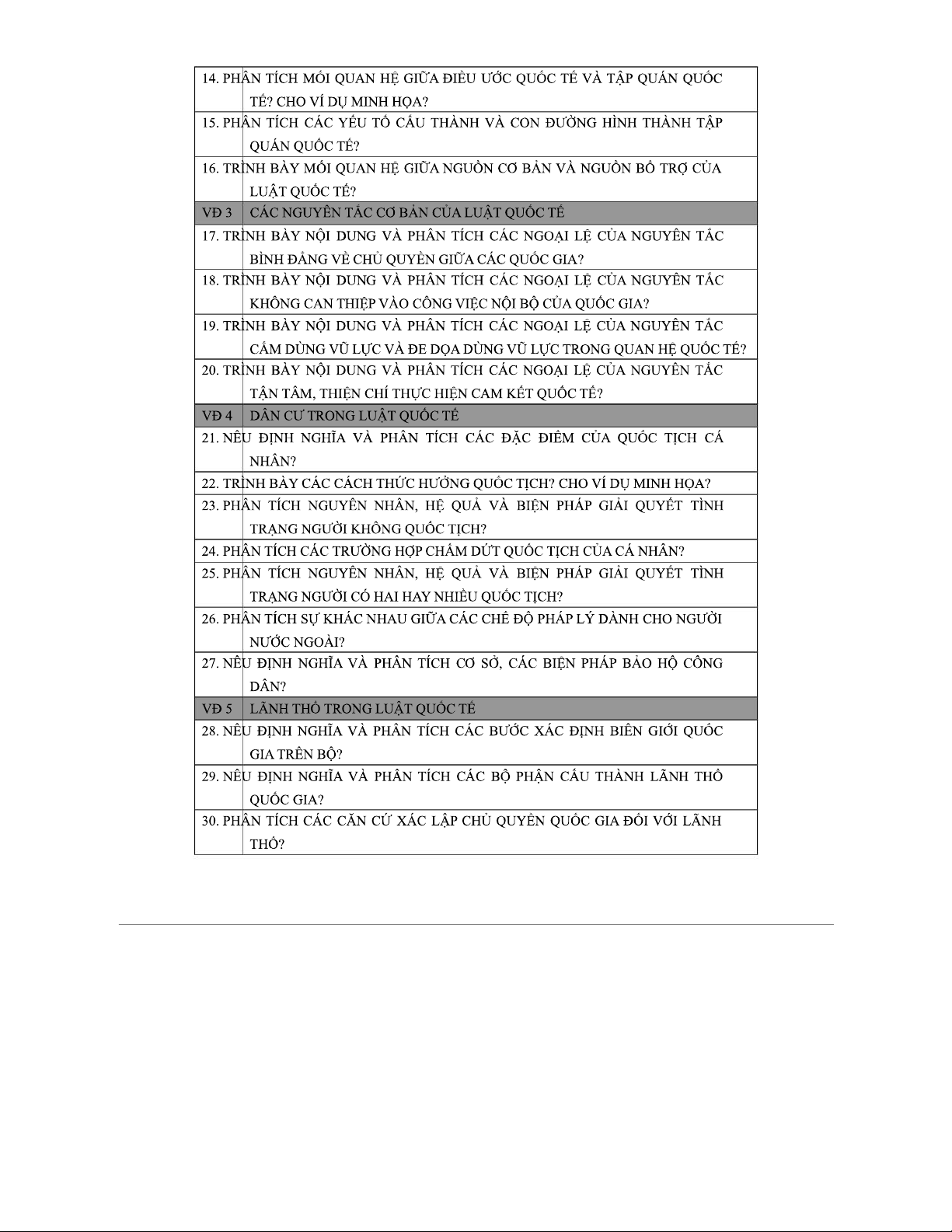 Bộ Câu Hỏi Thi Vấn Đáp Học Phần Công Pháp Quốc Tế - VB1CQ
