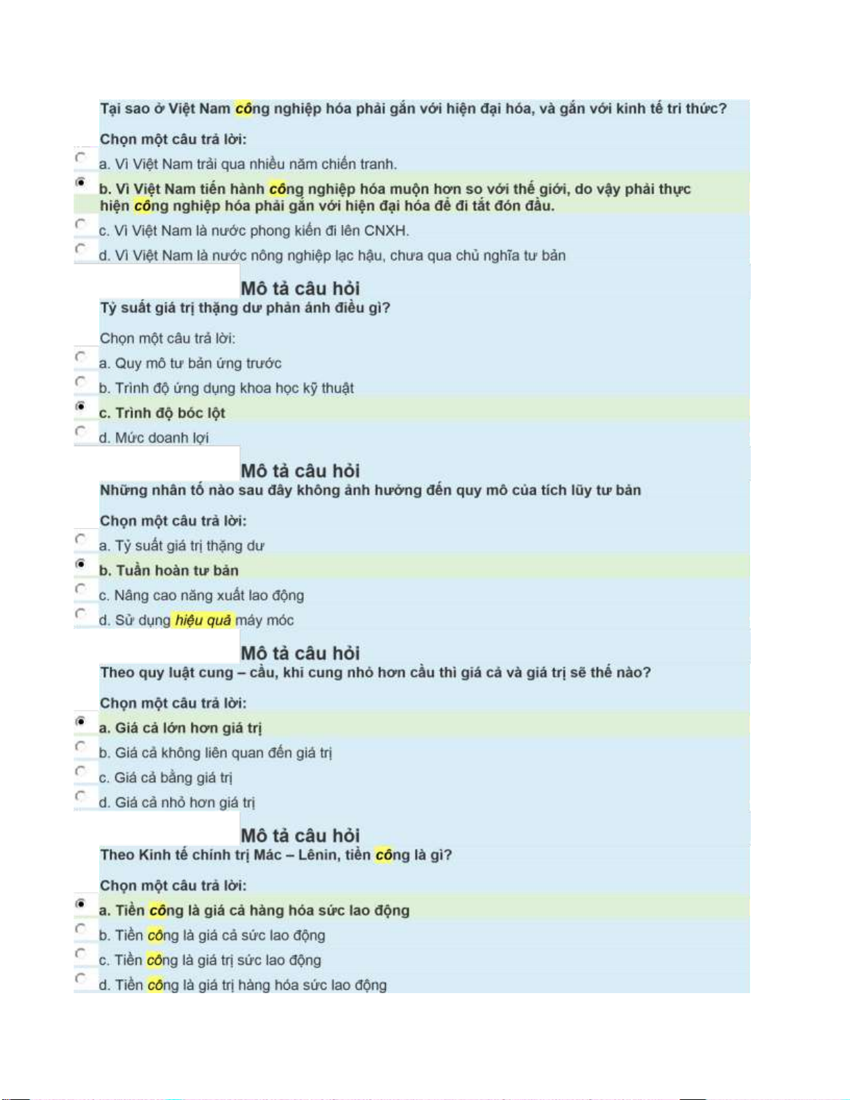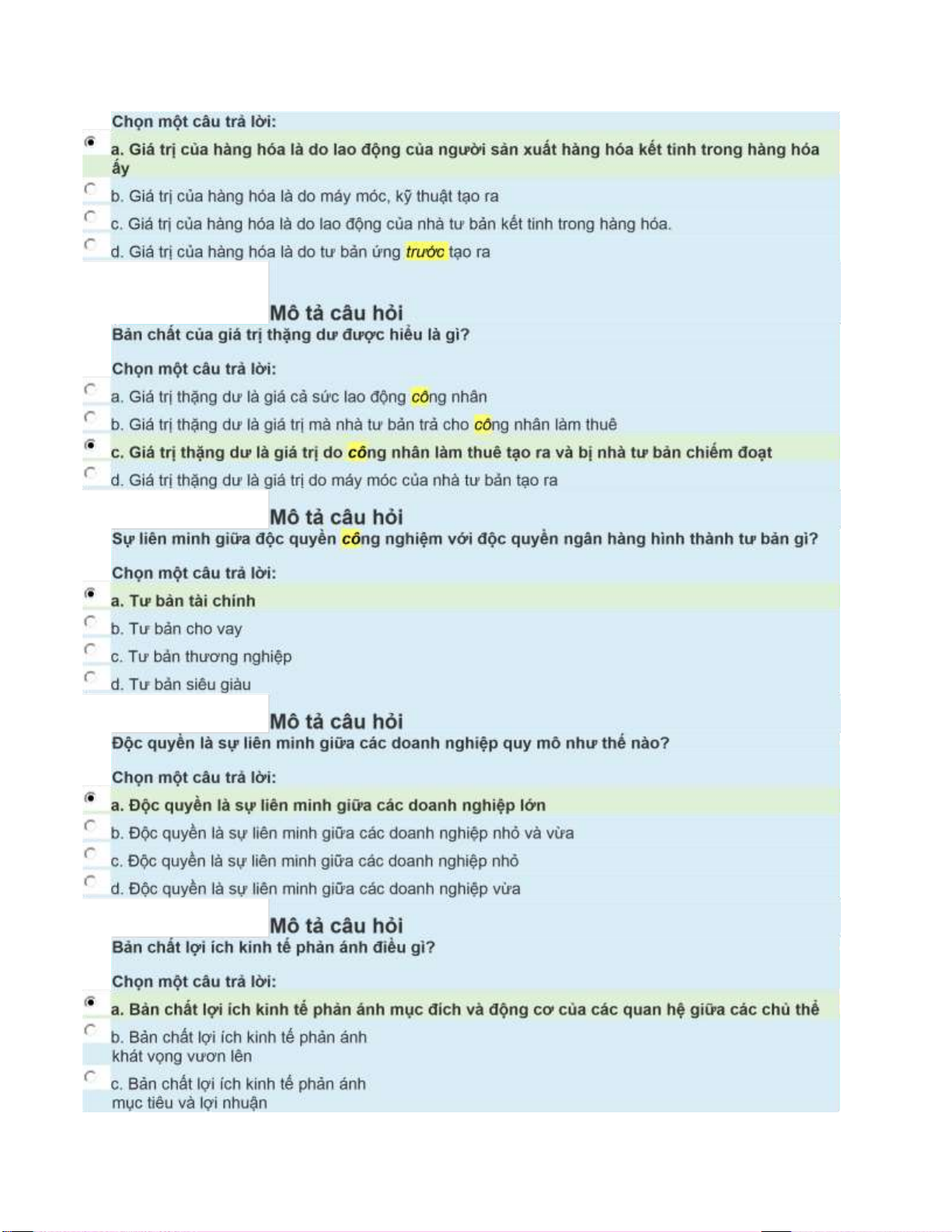 d. Các quan hệ xã hội của sản xuất và trao đổi lOMoAR cPSD| 48704538 Mô tả câu hỏi