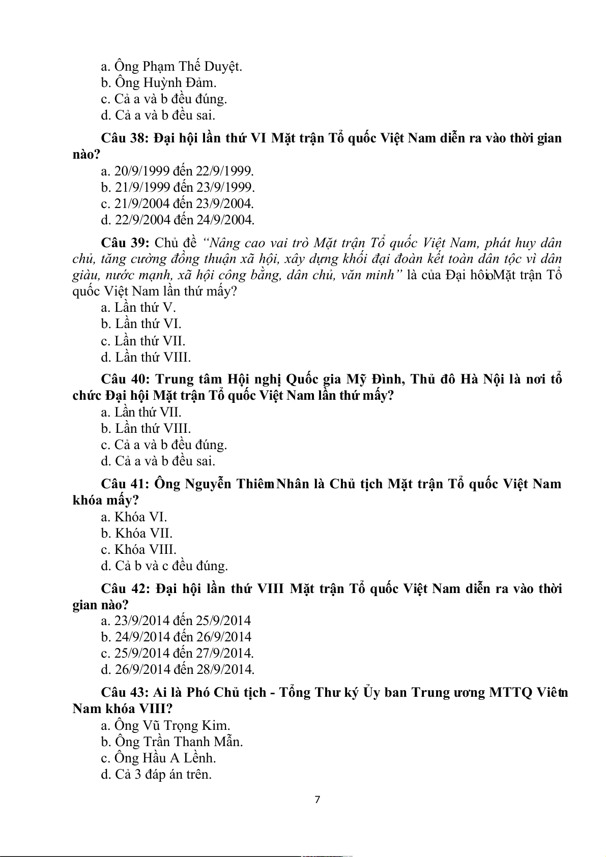 Nam đã qua mấy kỳ Đại hội? a. 7 kỳ đại hội. b. 8 kỳ đại hội. c. 9 kỳ đại hội.
