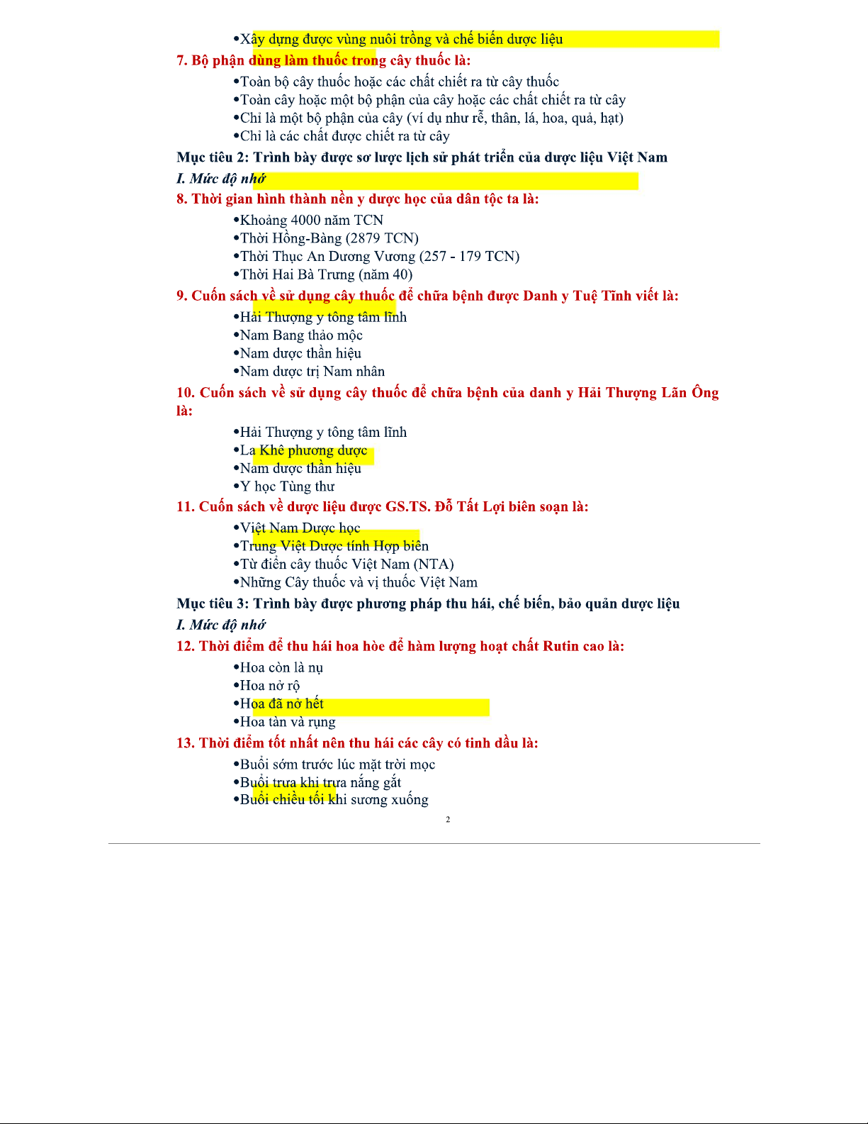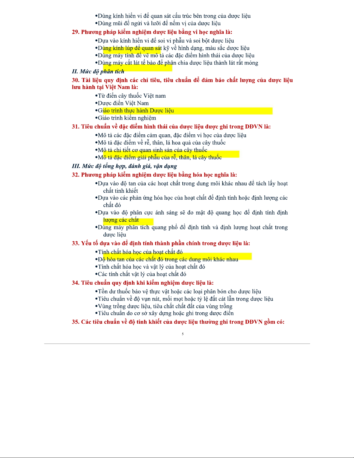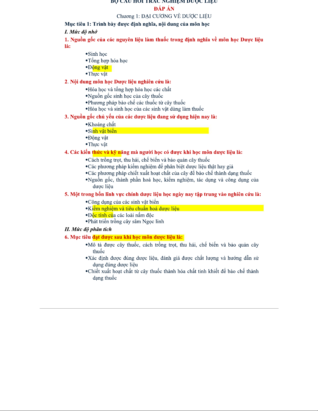 Bộ Câu Hỏi Trắc Nghiệm Dược Liệu - Môn Học Dược Liệu 2023