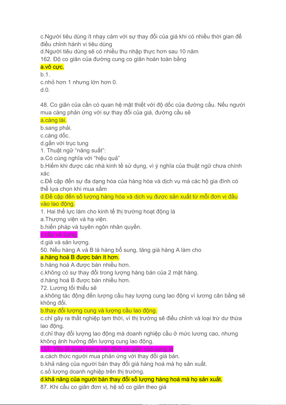 162. Độ co giãn của đường cung co giãn hoàn toàn bằng a.vô cực. b.1.