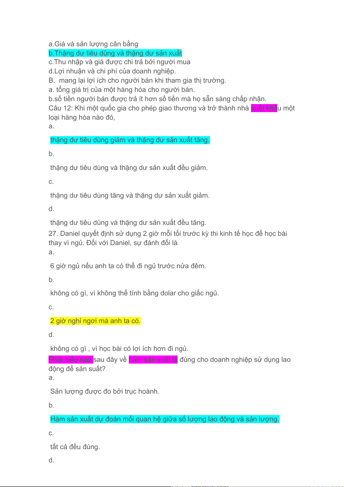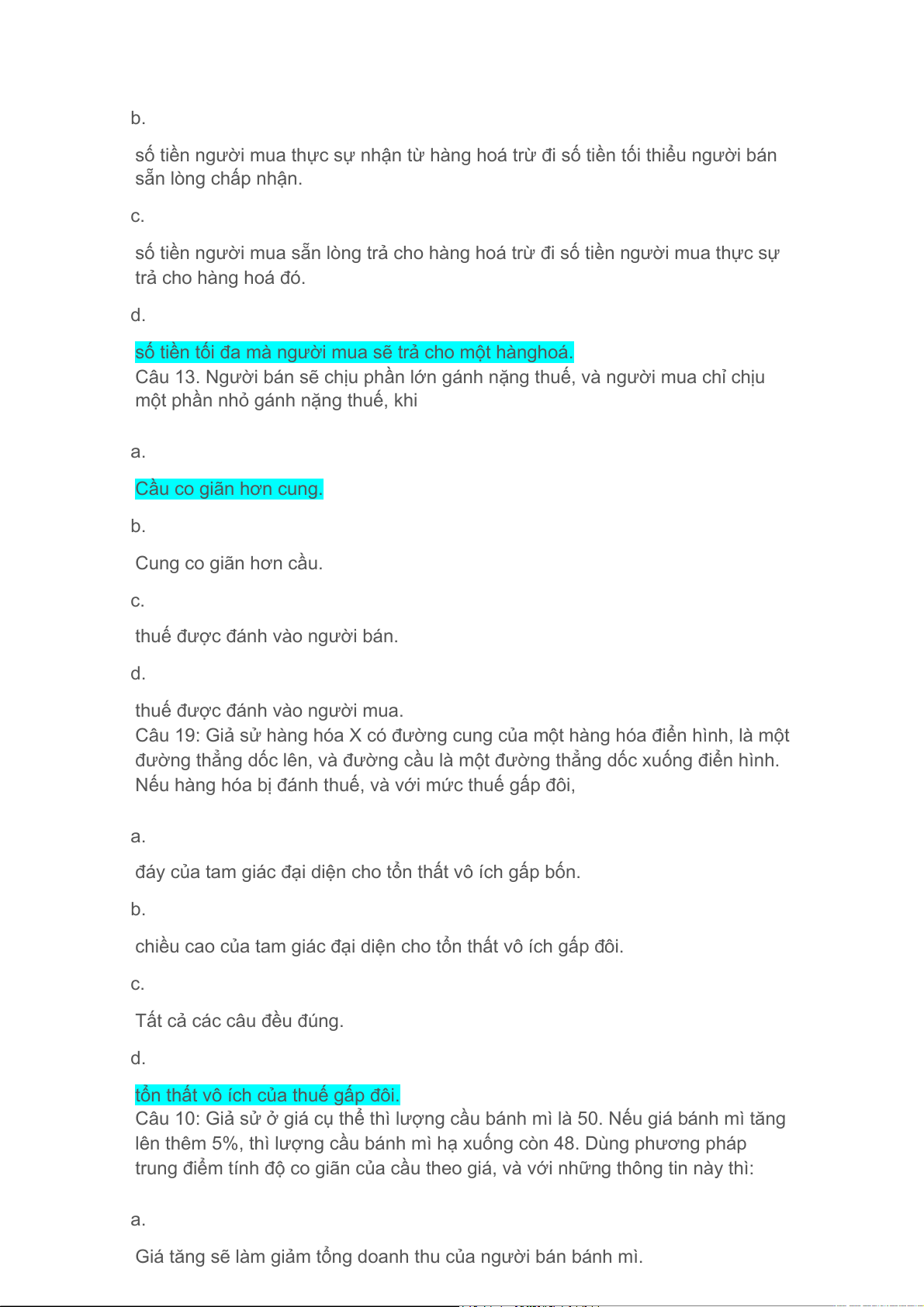 d.hàng hoá B được bán nhiều hơn. 72. Lương tối thiểu sẽ