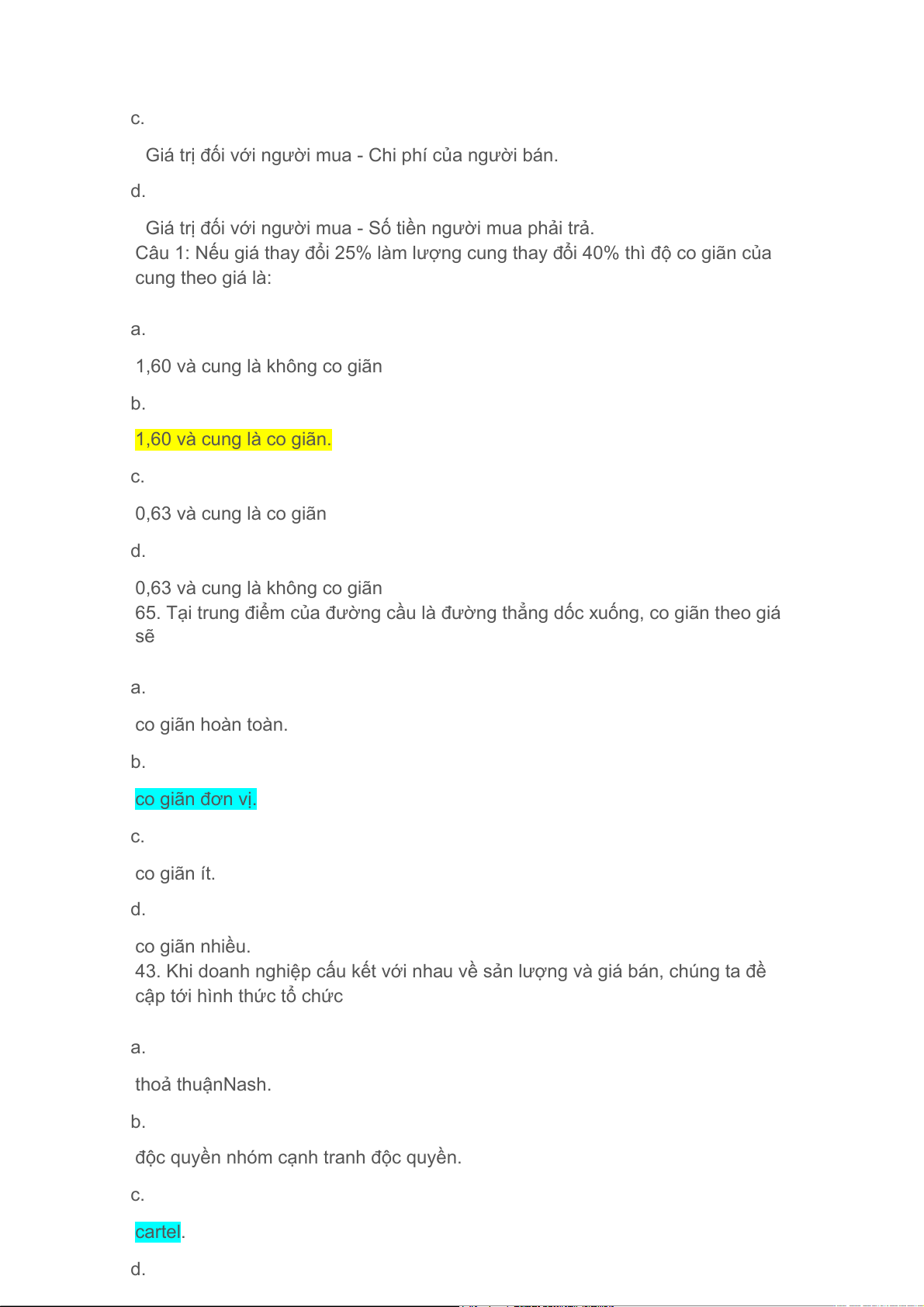 153. NẾu co giãn của cung hàng hoá lớn hơn 1, thì cung a. ít co giãn. b. co giãn nhiều. c.