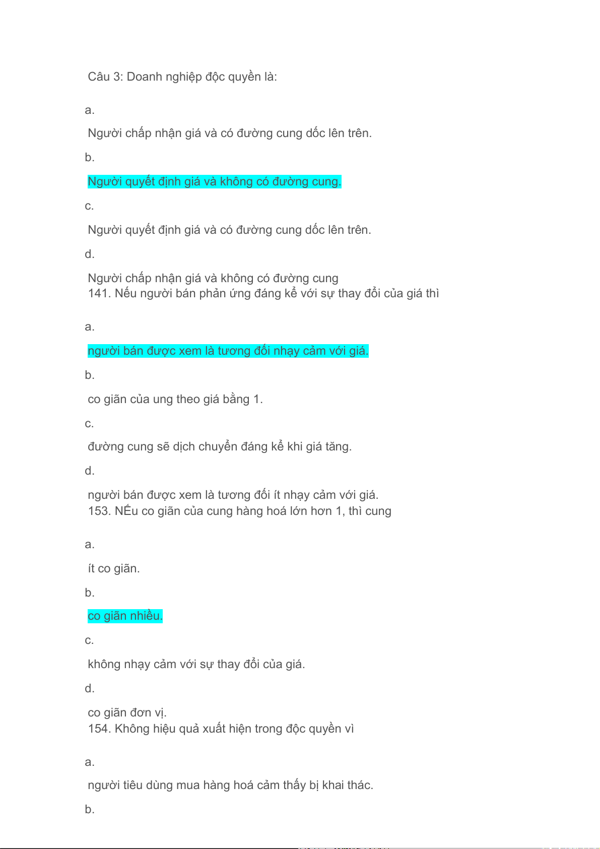 141. Nếu người bán phản ứng đáng kể với sự thay đổi của giá thì a.