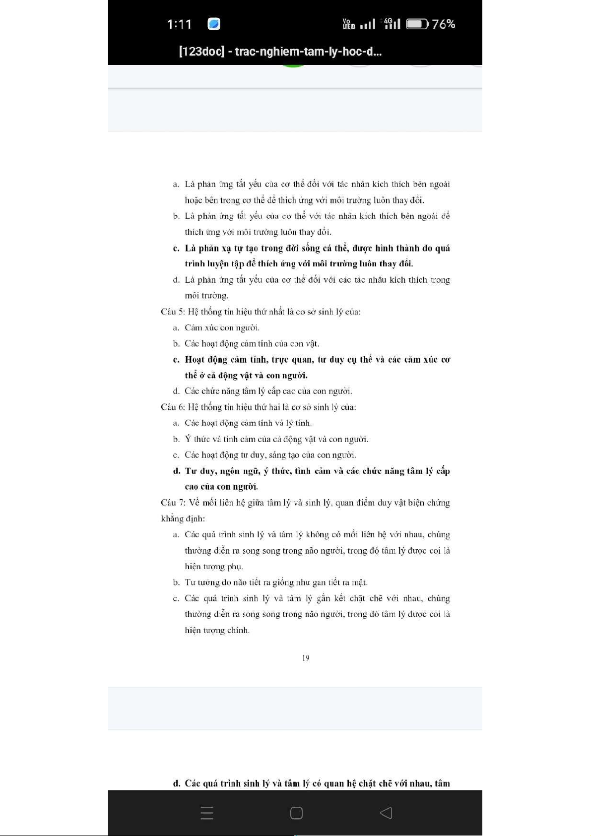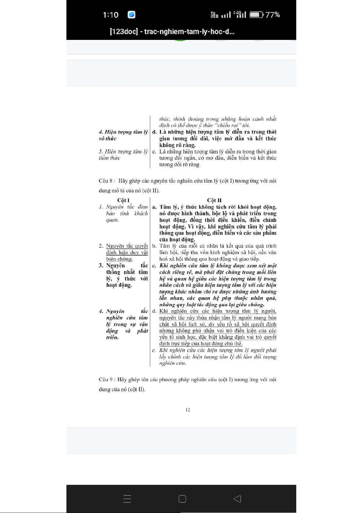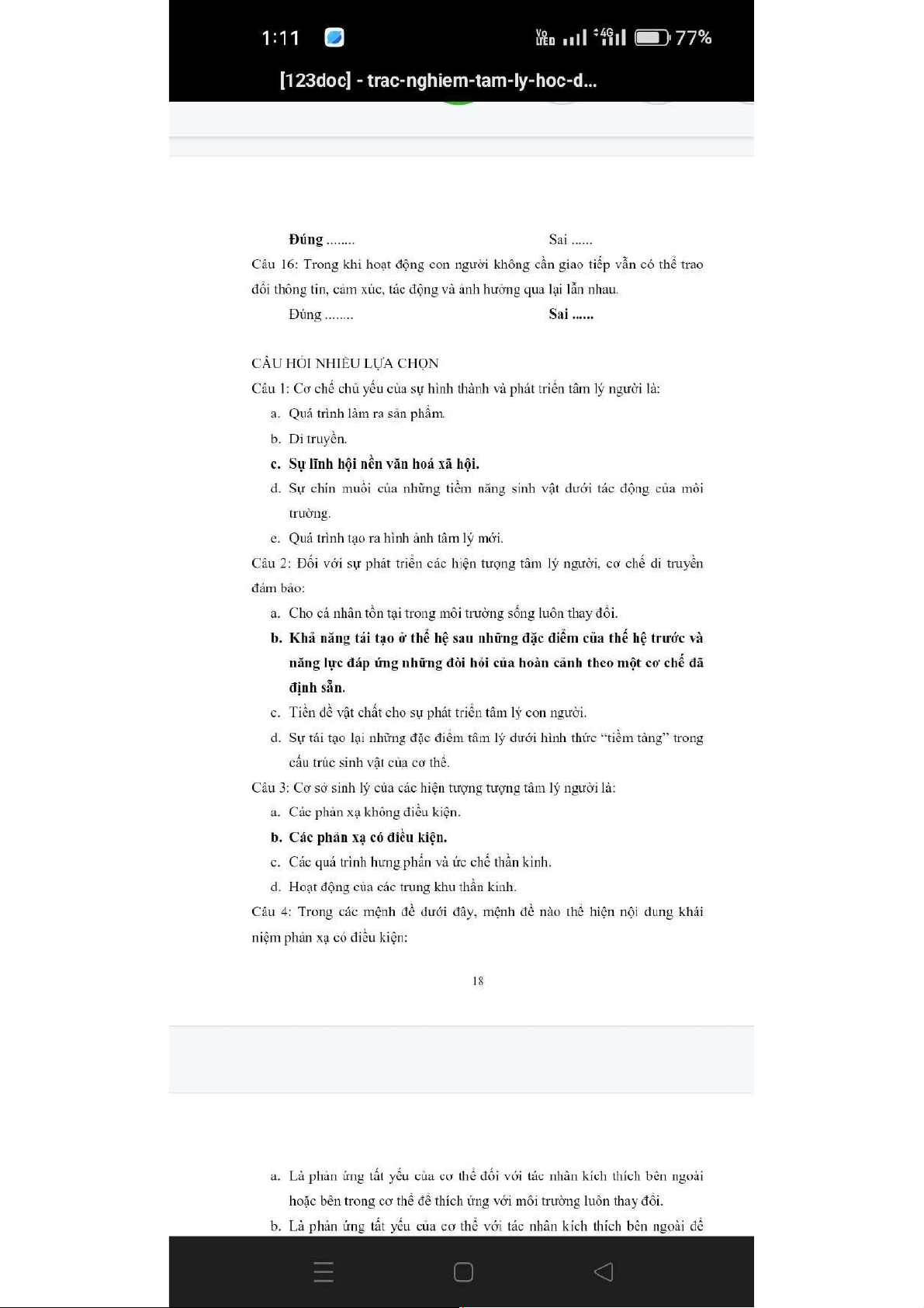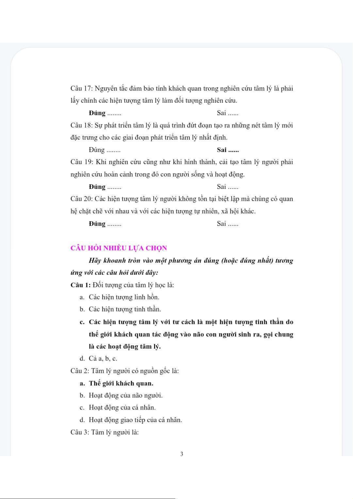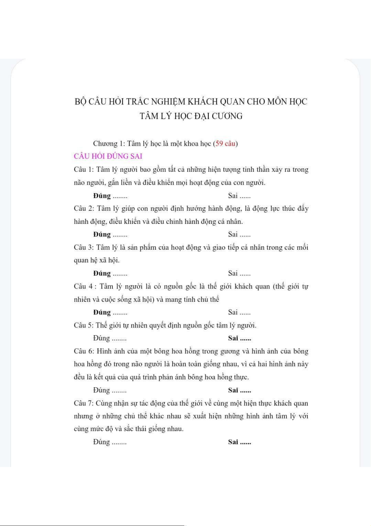 Bộ câu hỏi trắc nghiệm Môn Tâm lí học đại cương | Đại học Sư phạm Hà Nội 2