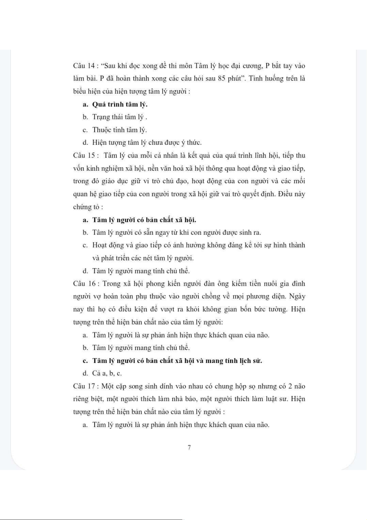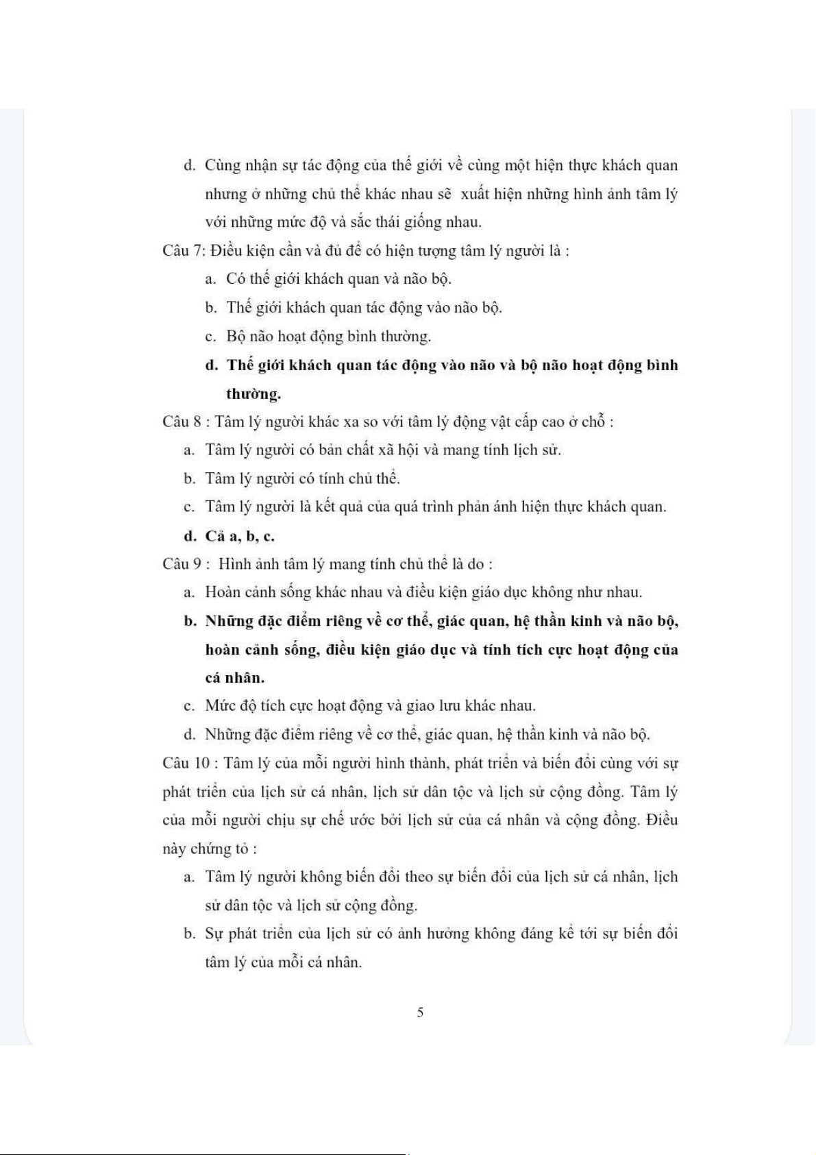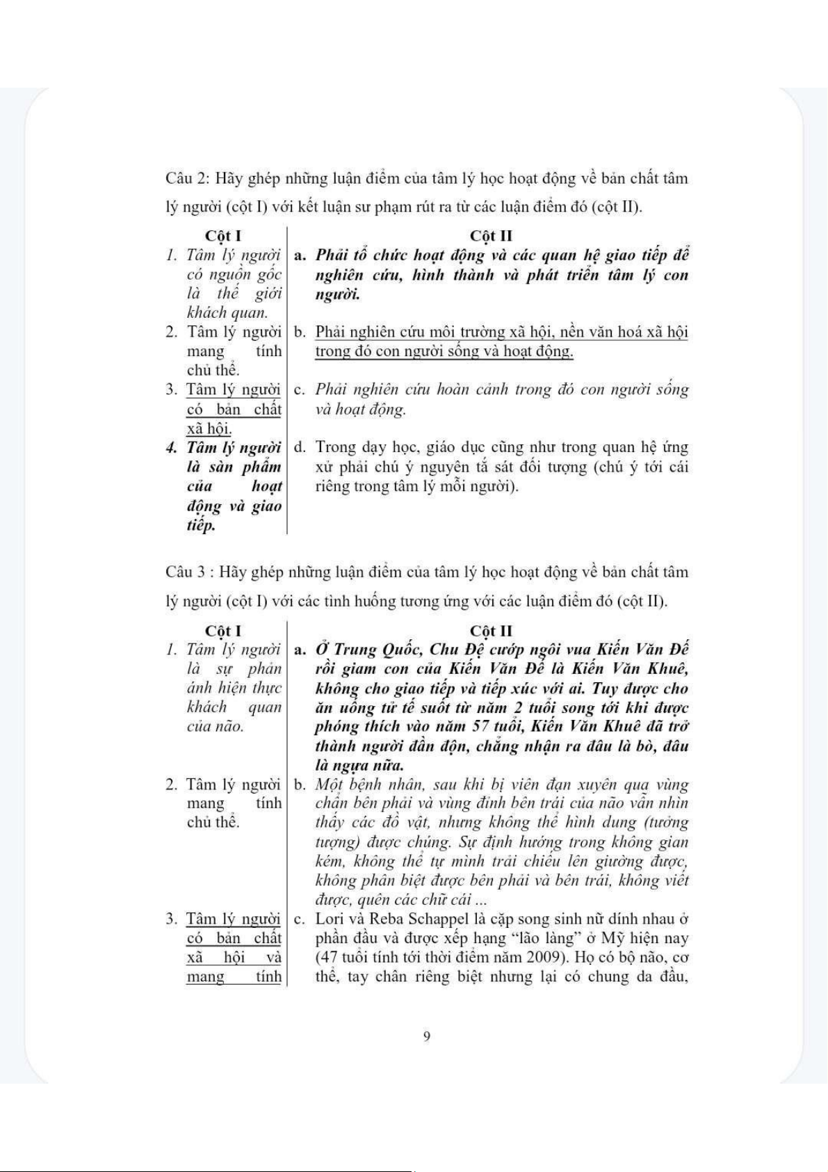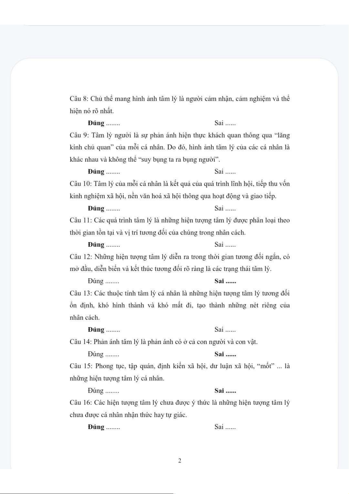 Câu Hỏi và Đáp Án Ôn Tập Môn Tâm lí học đại cương | Đại học Sư phạm Hà Nội 2