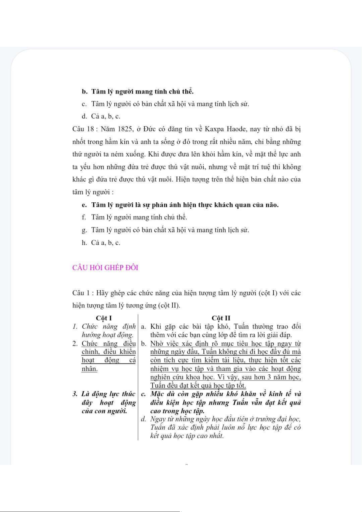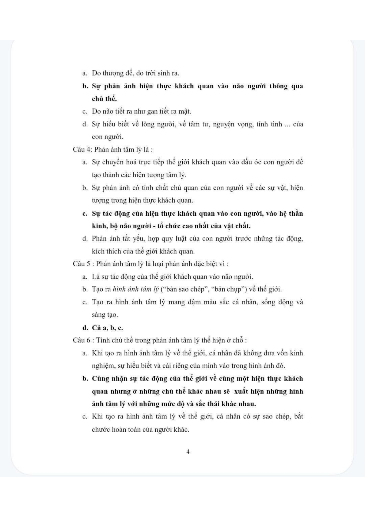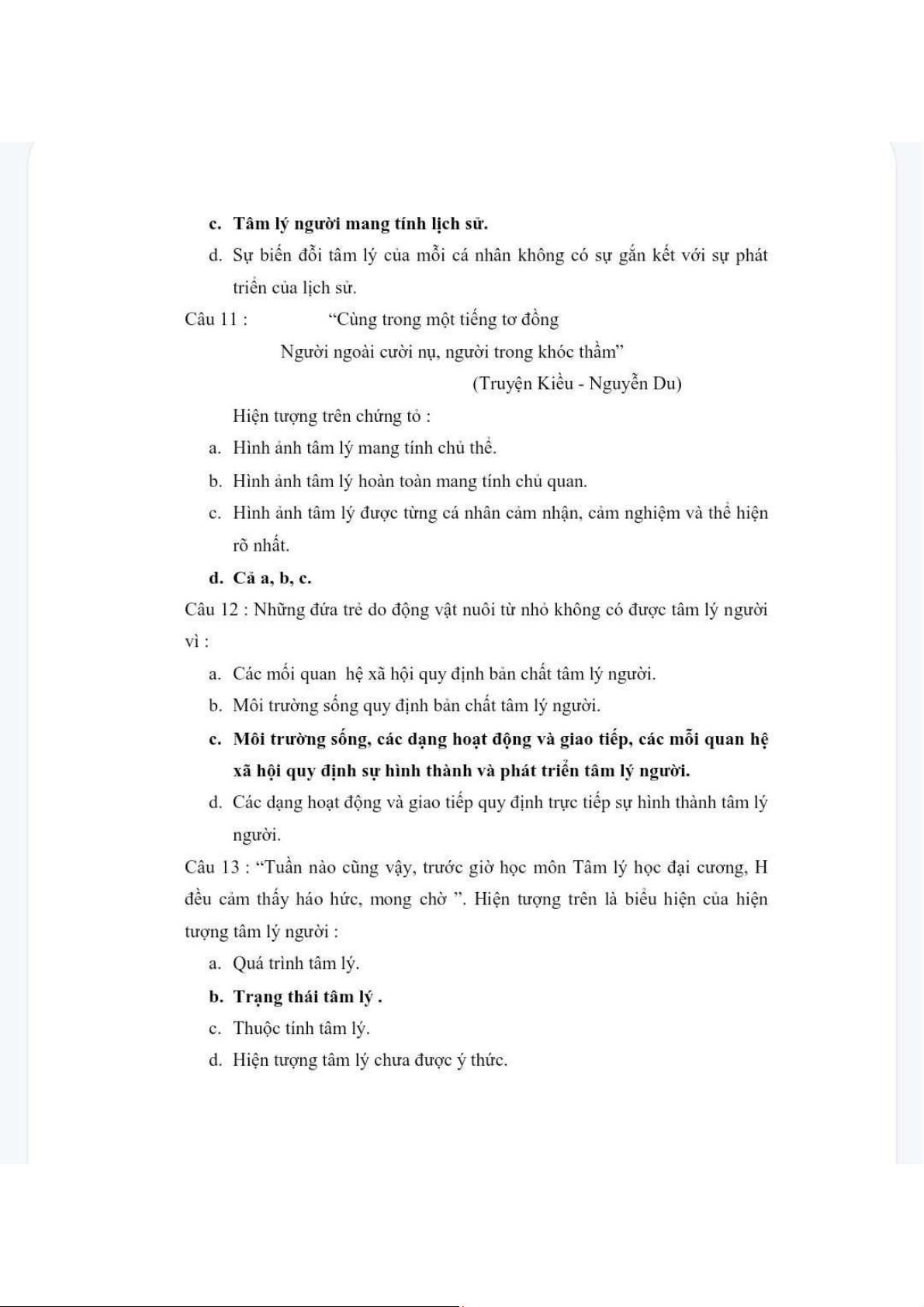 Câu Hỏi và Đáp Án Ôn Tập Môn Tâm lí học đại cương | Đại học Sư phạm Hà Nội 2