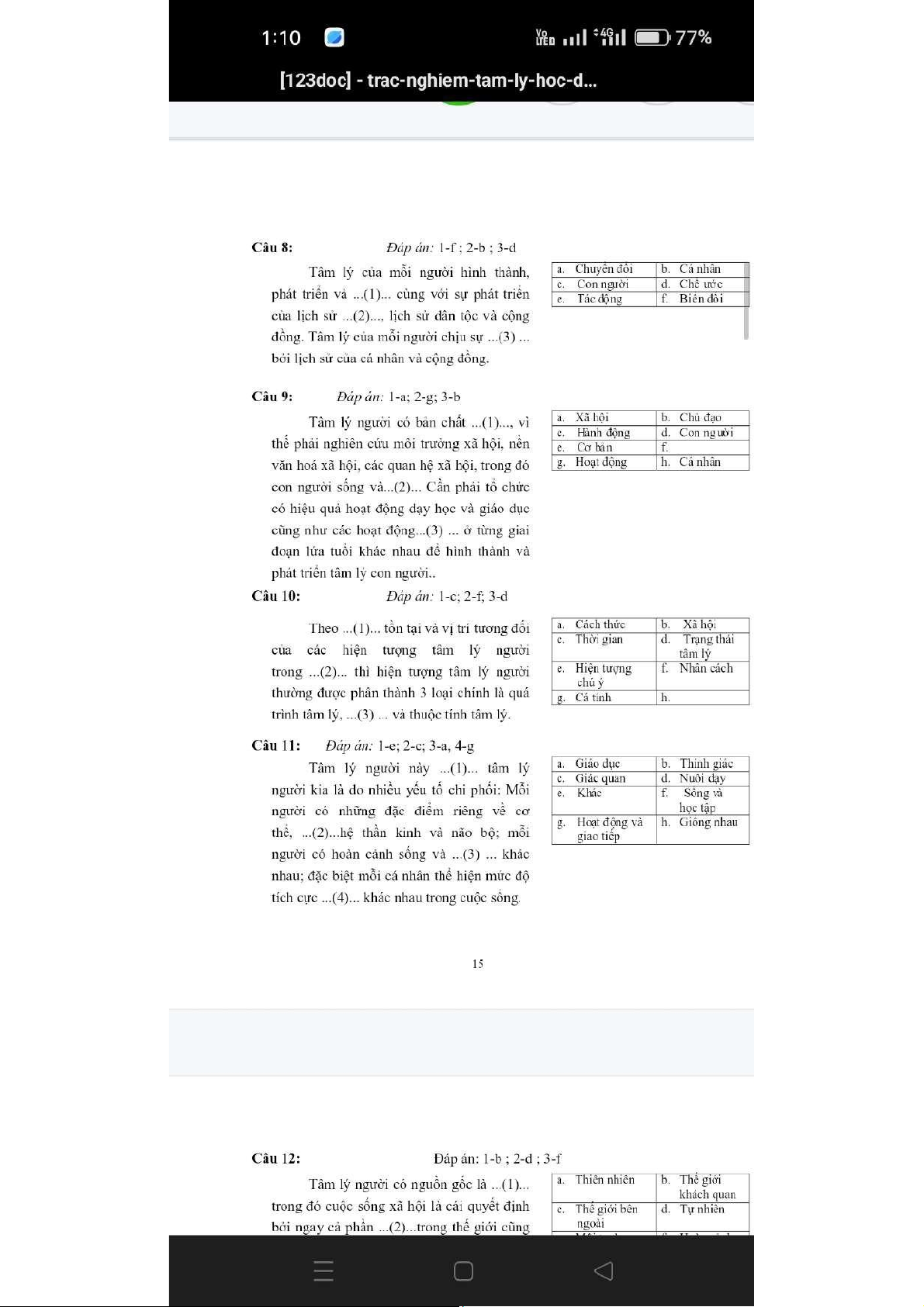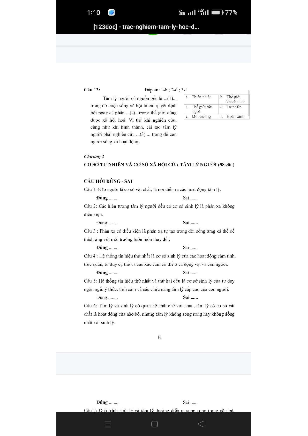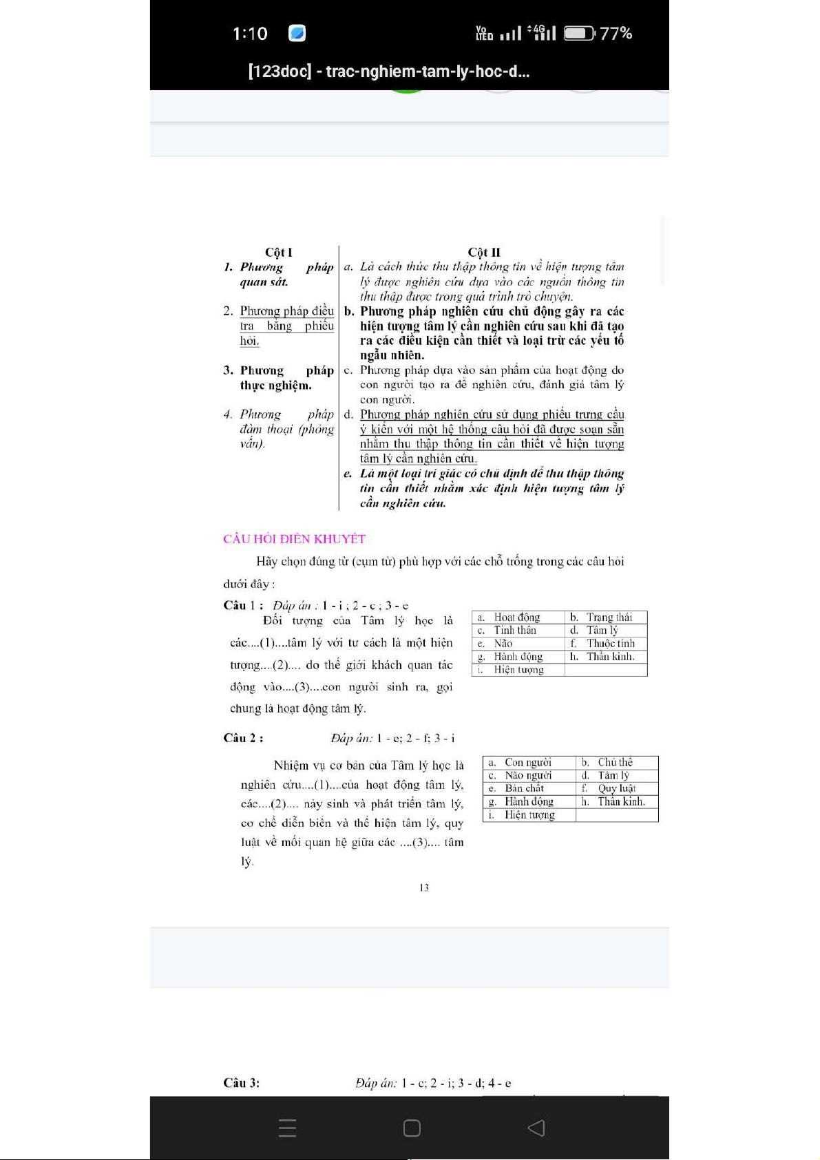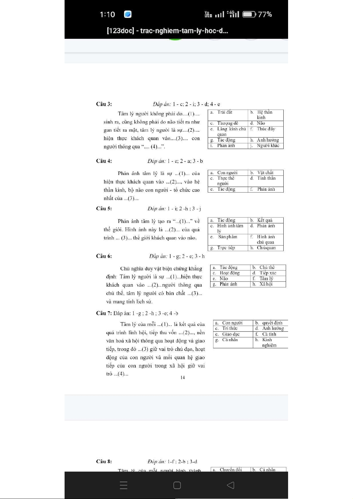 Câu Hỏi và Đáp Án Ôn Tập Môn Tâm lí học đại cương | Đại học Sư phạm Hà Nội 2