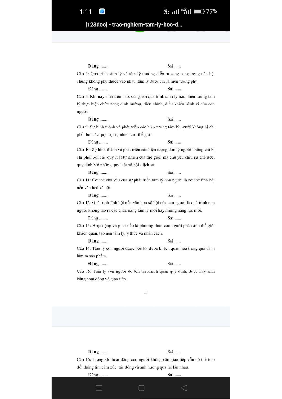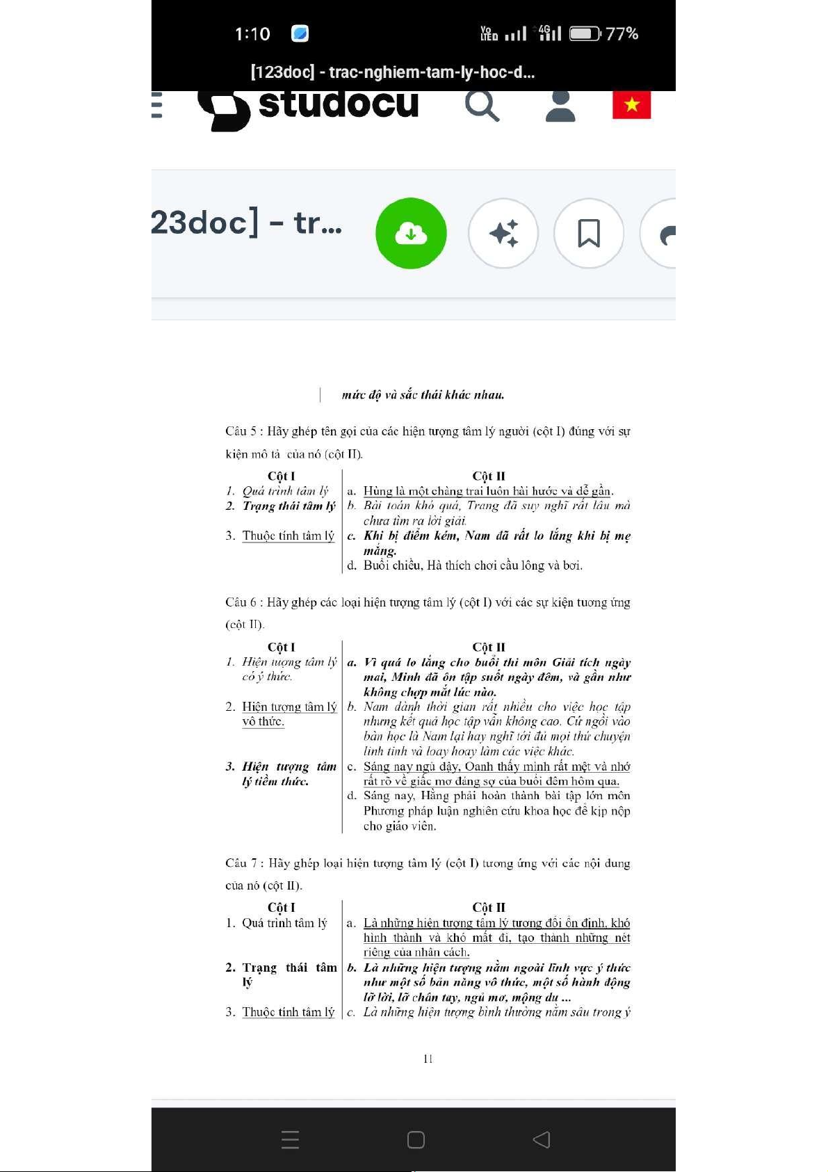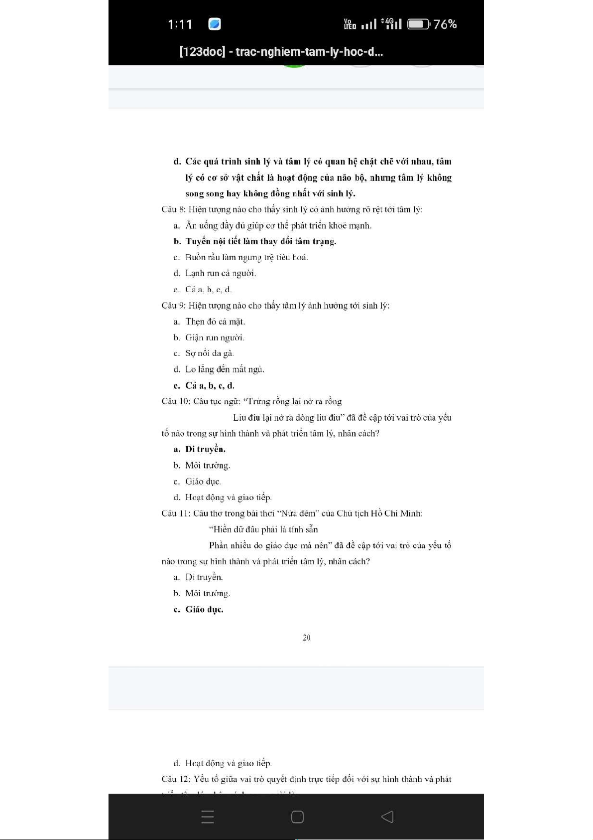 Môn: Tâm lí học đại cương (TLH) 11 tài liệu