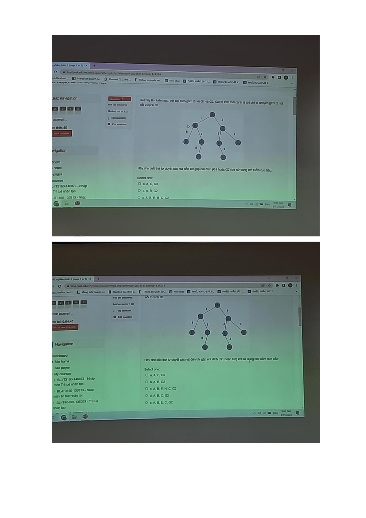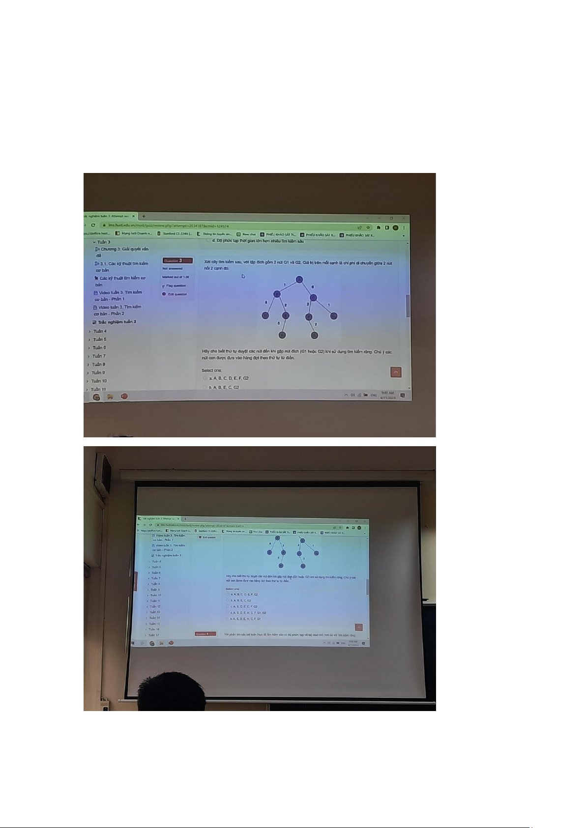 - False: tìm kiếm rộng có độ phức tạp về bộ nhớ nhỏ hơn so với tìm kiếm sâu 5. d, A,B,D,E,H,C,F,G1