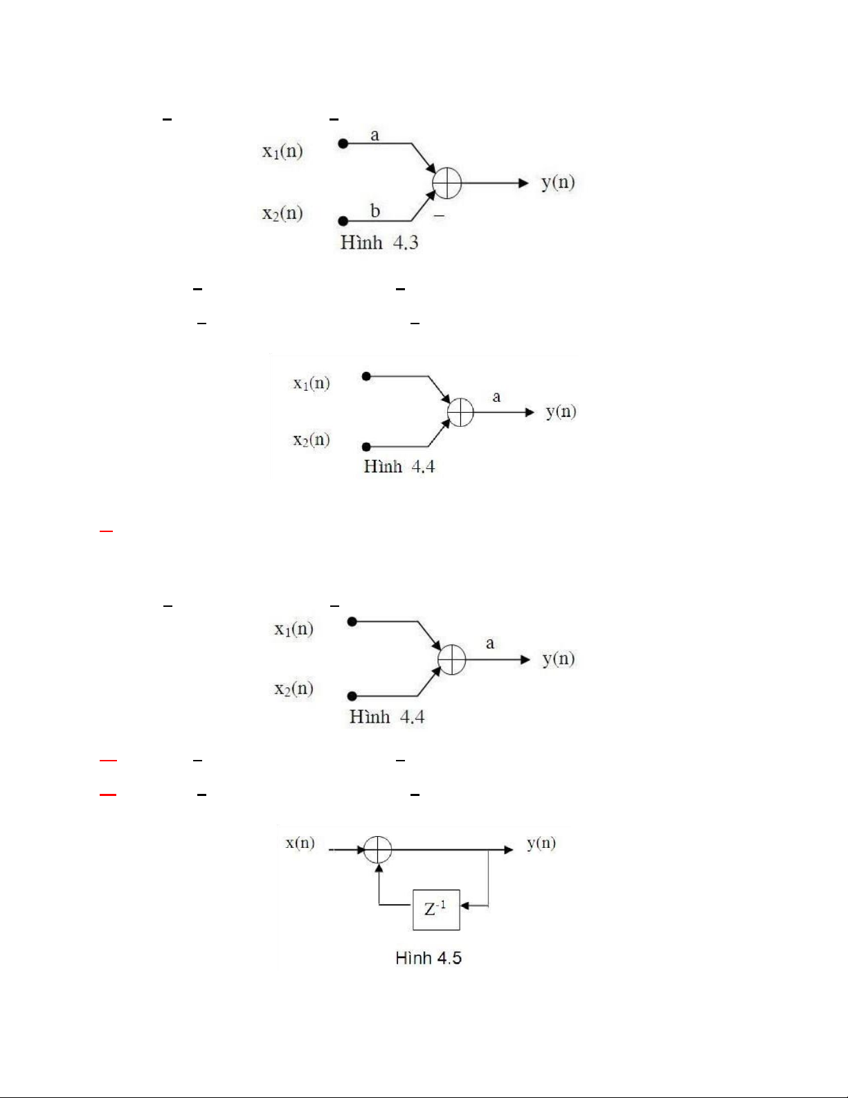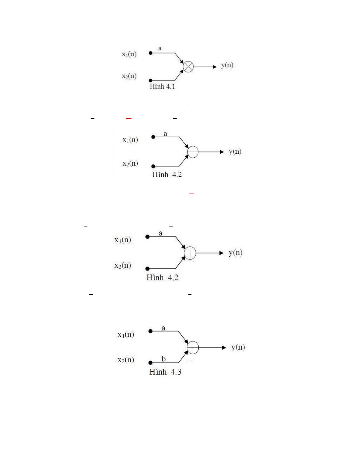Câu 21: Cho sơ đồ khối như hình 4. 3 A. y(n)= x1(n)+ x2(n) C. y(n)= x1(n). x2(n) B. y(n)= ax1(n) - bx2(n)