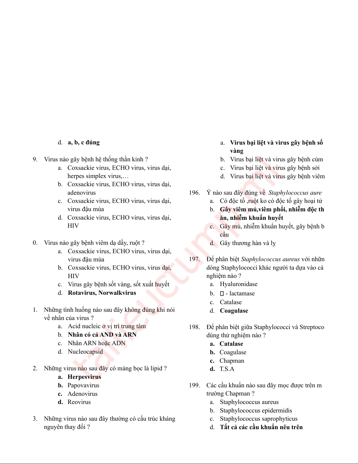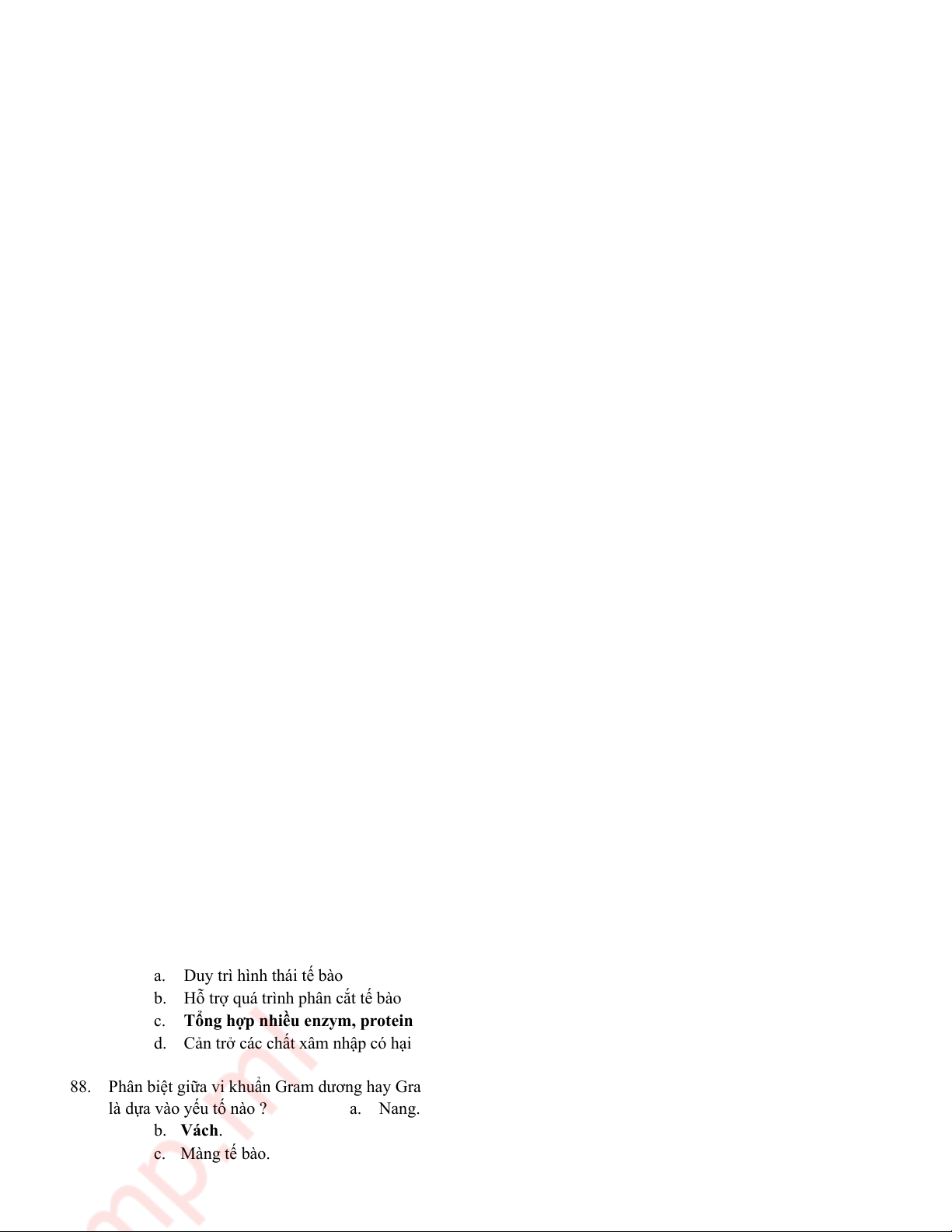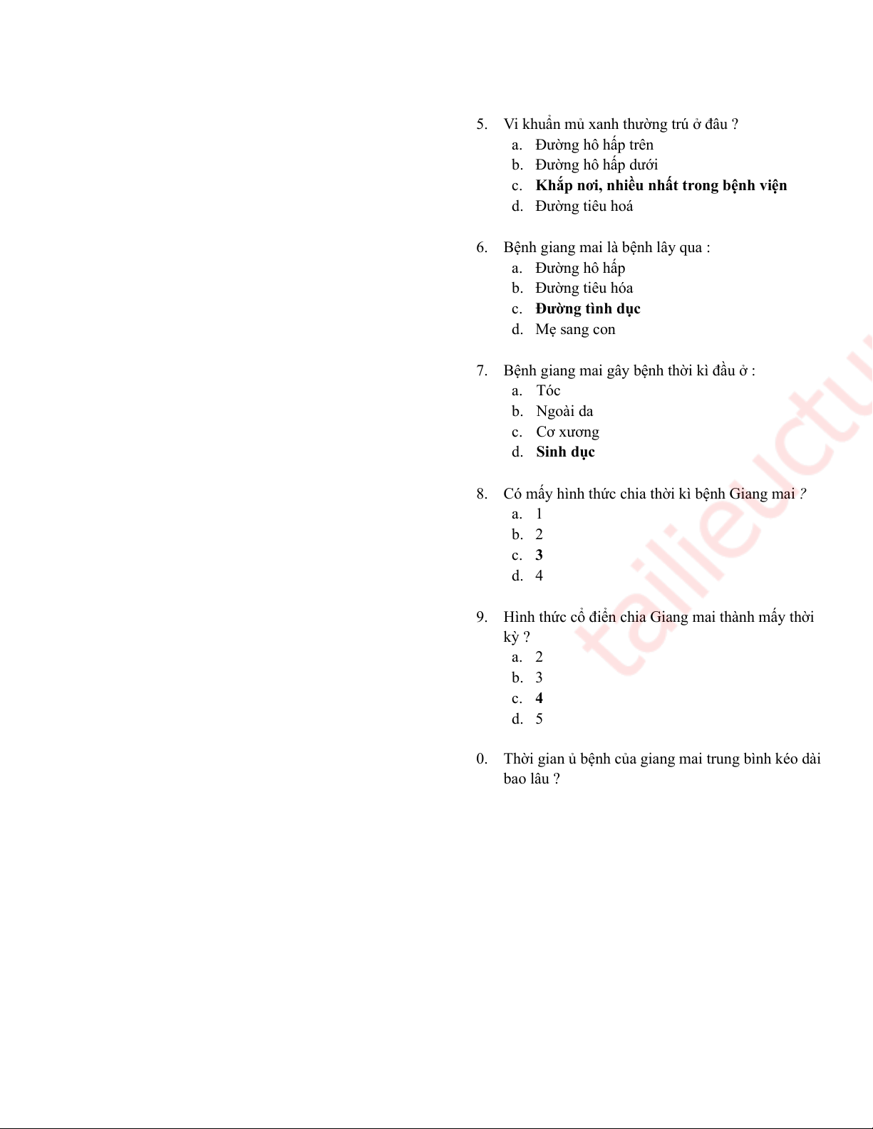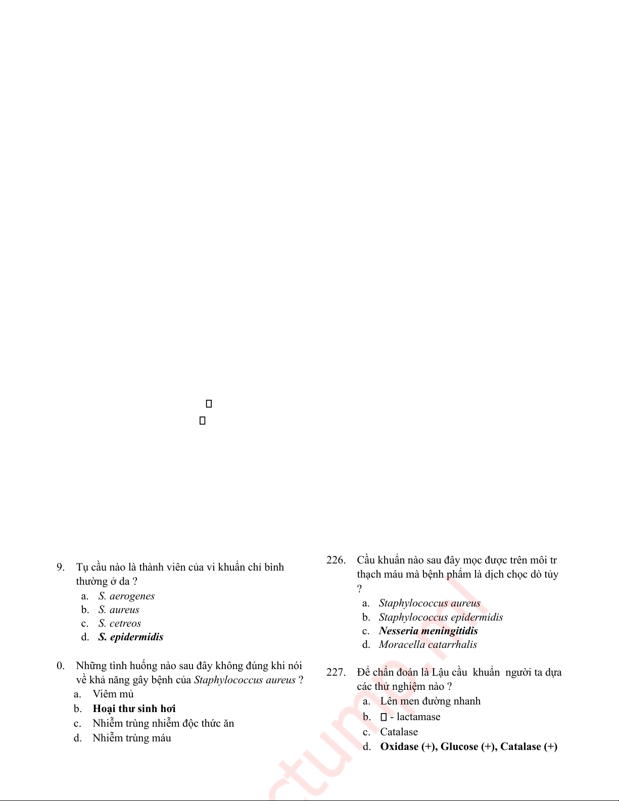 b. Trực khuẩn Gram (-) a. 1 tháng b. 45 ngày lOMoAR cPSD| 47205411 c. 1 tuần
