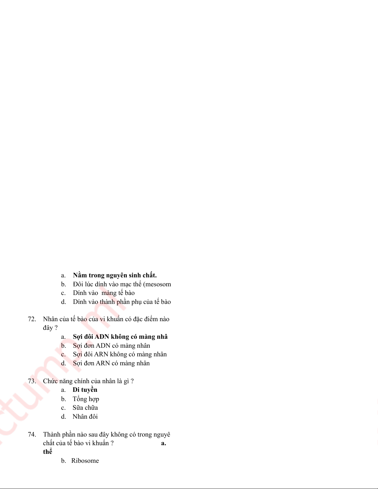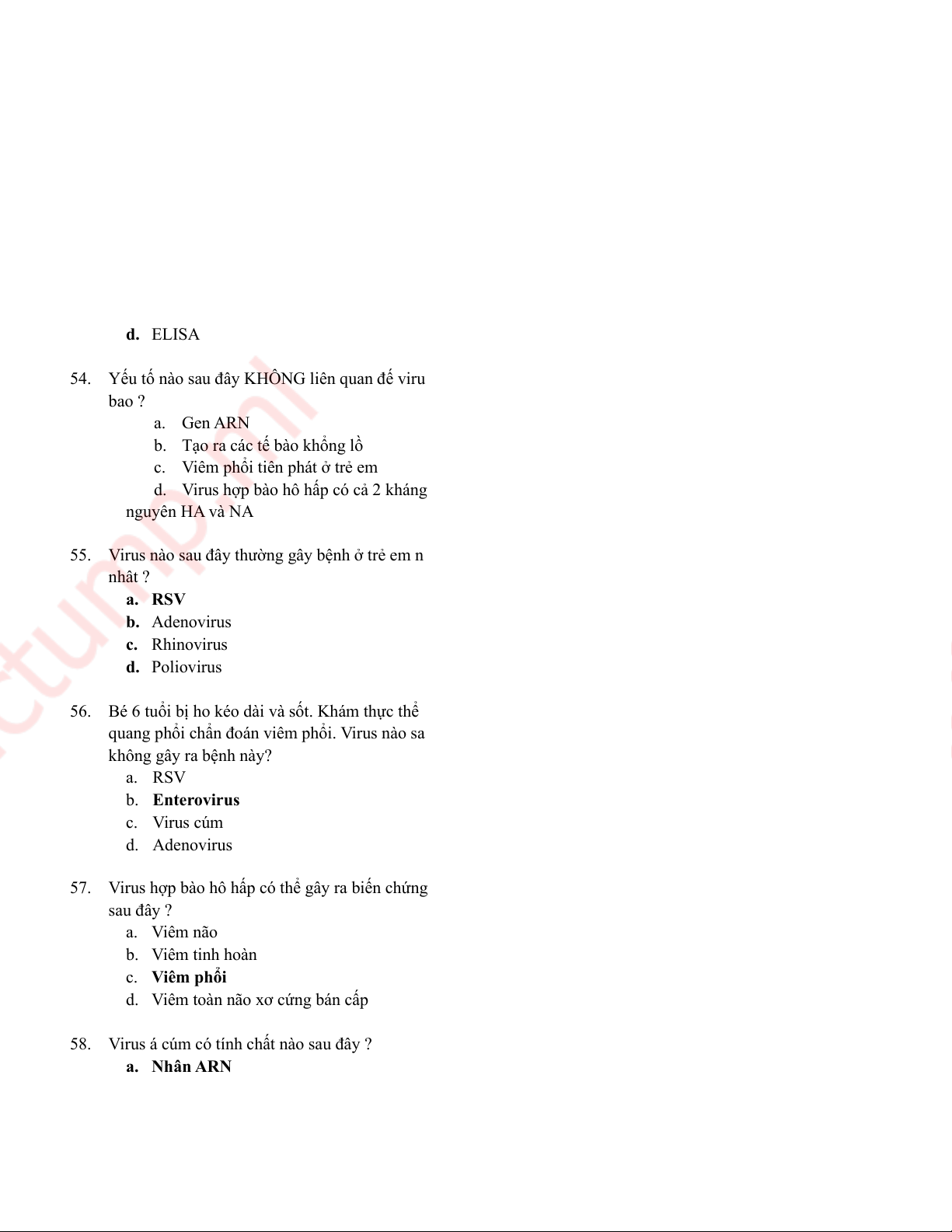 32. Nhân của virus chứa : b. H3N5, H1N3, H7N7 a. AND hoặc ARN c. H7N7, H5N1, H9N2 b. ARN d. H1N2, H2N4, H9N2 c. ADN và ARN d. ADN